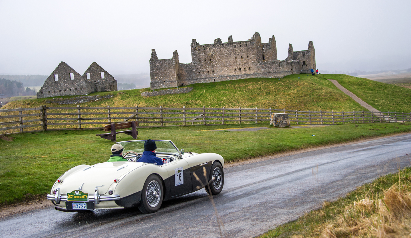 While rain drenched much of the UK, sunshine arrived on day two, which included a stop at Balmoral Castle. Day three featured stops at Glenfiddich, Glenlivet and Macallan distilleries. This was followed on day four by a test around Loch Ness. Spectacular driving featured throughout, particularly a blast up the Rest and Be Thankful hillclimb.