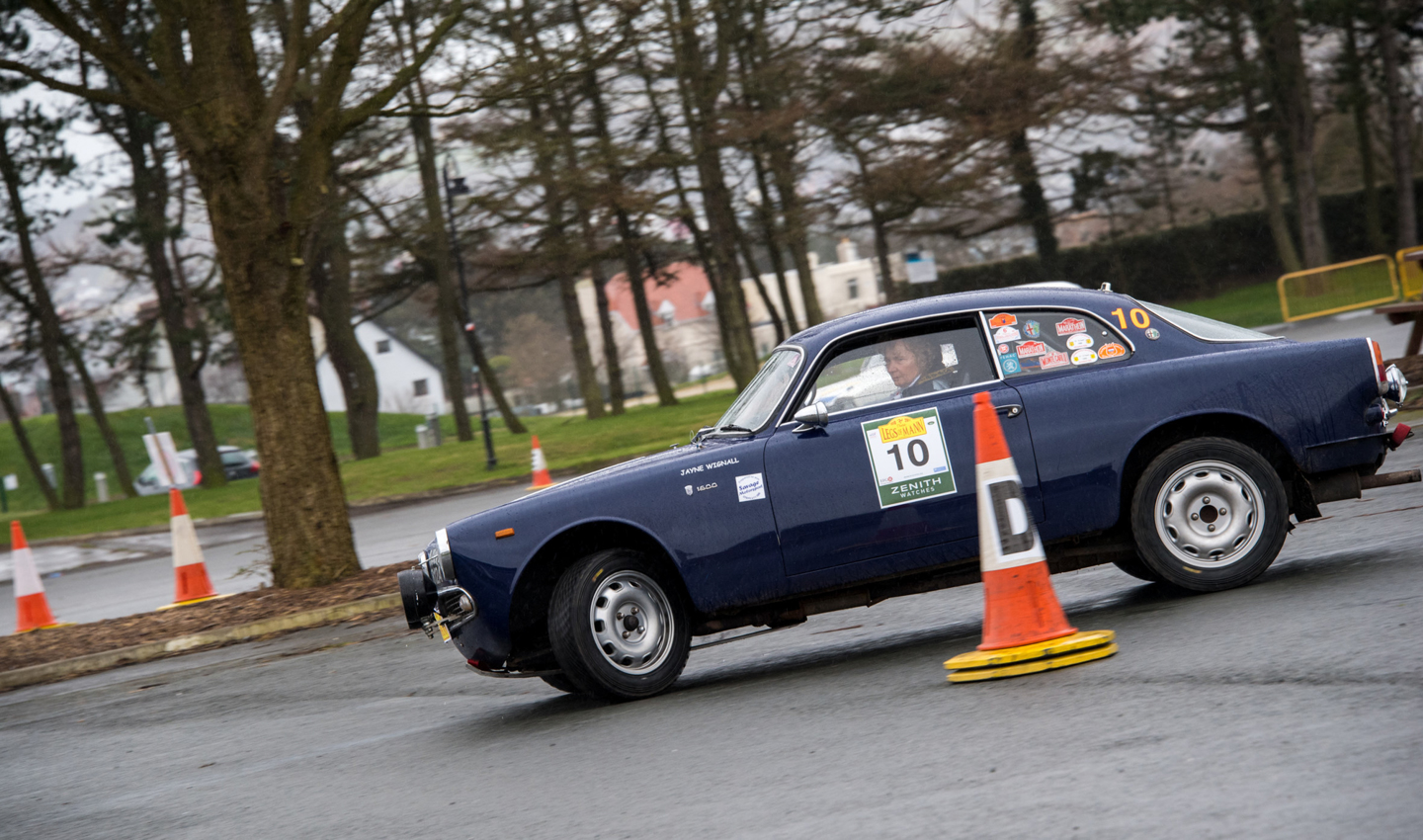 Medal winners returning after a while away from Le Jog are five-time RAC Rally of the Tests winner Paul Wignall navigated by six time winner of the RAC event Mark Appleton. Paul recently excelled out of his 1959 Alfa Romeo Giulietta Sprint for a change, to perform excellent live RoTT commentary duties at the very first competitive test to be held inside the halls of the Lancaster Insurance Classic Car Show at the NEC. He was unaware that his wife and front running driver Jayne Wignall was lying second in the HERO Cup drivers’ championship awards, nor was Jayne, but now she is!