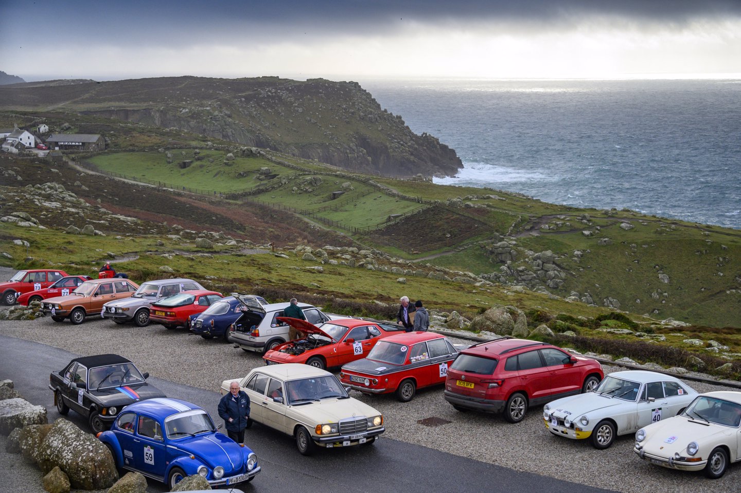 With 83 cars due to start the 25th Silver Jubilee Le Jog on Saturday morning, feverish preparations have been taking place at the Land’s End Hotel, as crews from ten different countries take their last chance to make adjustments to rally machinery and maps.