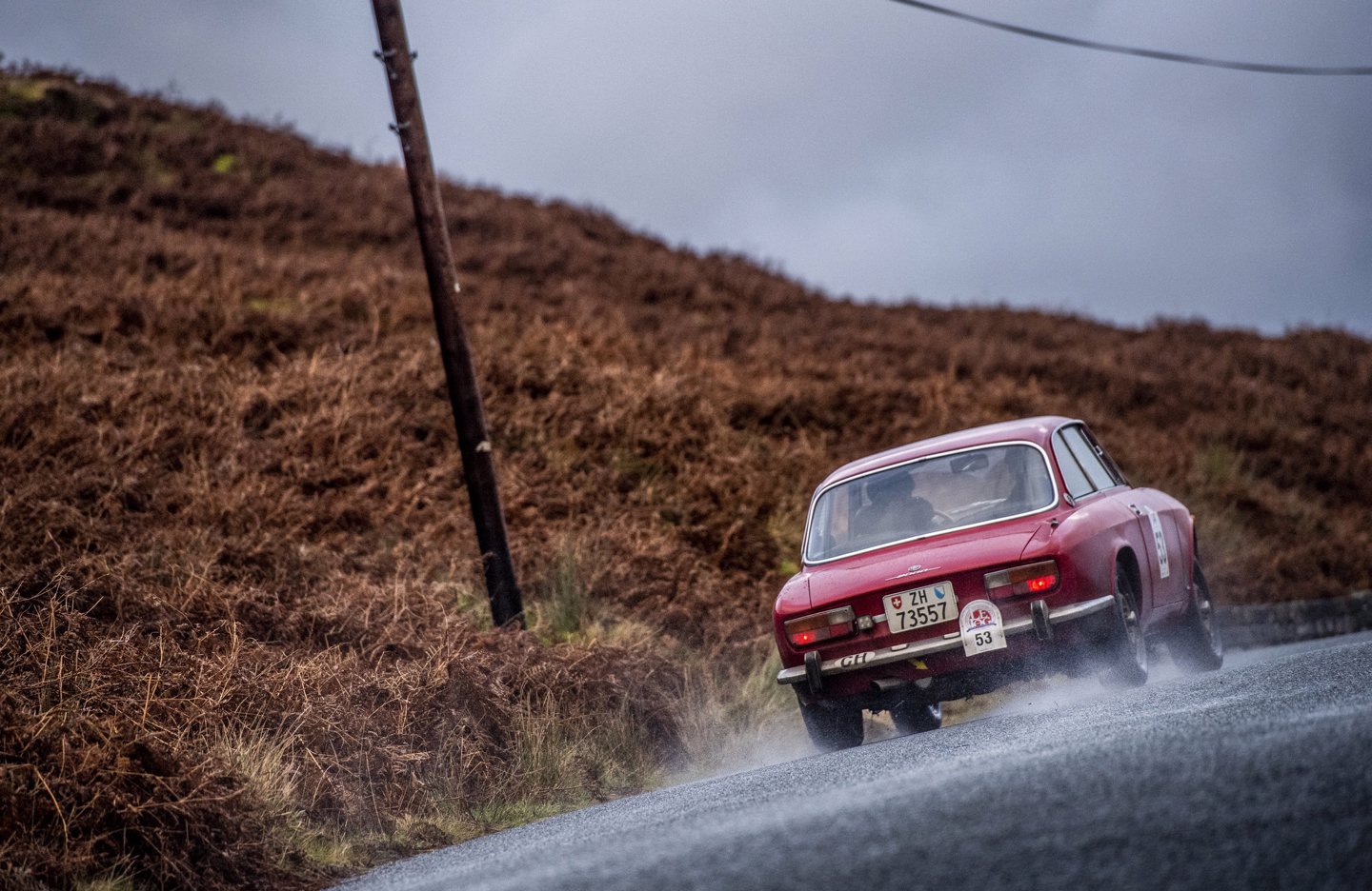 Spare a thought for the Vintage crews, many of whom are competing in open tops despite the weather. Emily Anderson who was drafted in at the very last moment to navigate her father explained the size of the task. Emily; “The water is really deep, I have been thrown in but we haven’t made any massive errors, partly due to the status of others around us. I am trying to concentrate and read the map and not look at any animals but it has been so wet, we just cant keep dry, the logistics of it all are awful, then we had hail today!