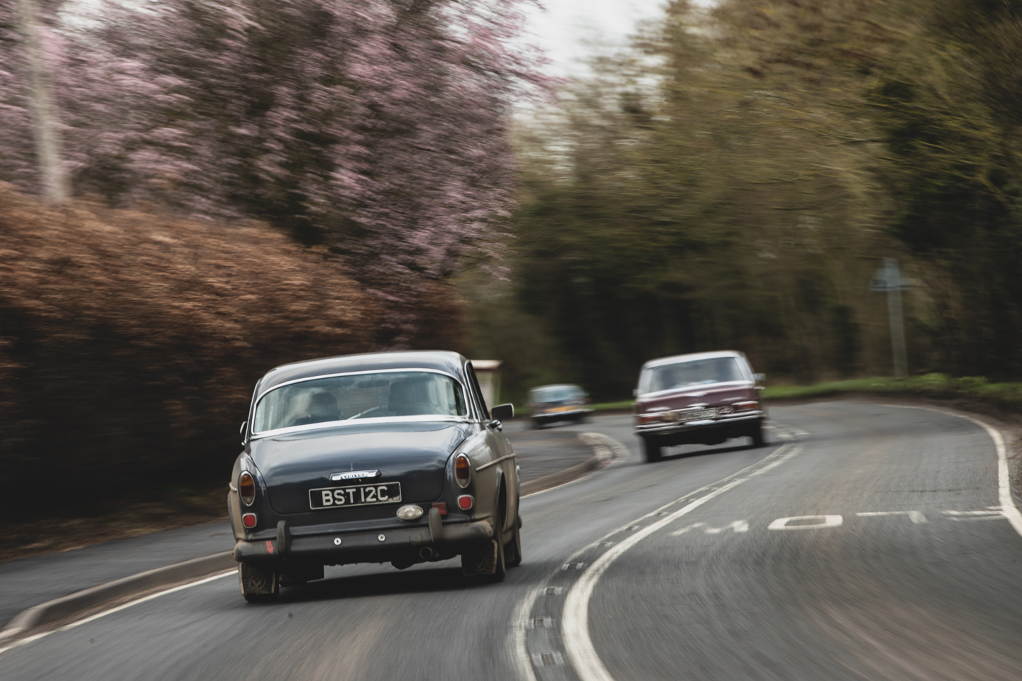 To complete this class there are no less than four Austin Healey 3000 from Mk 1-3, then the Jaguar Mk2 of Gavin Webster and Andy Chun fresh from their successful seventh overall on the Novice Trial. Car 23 is the Le Jog favourite of ‘evergreen’ competitors Robert and Susan McClean in their 1962 Rover P4-100.