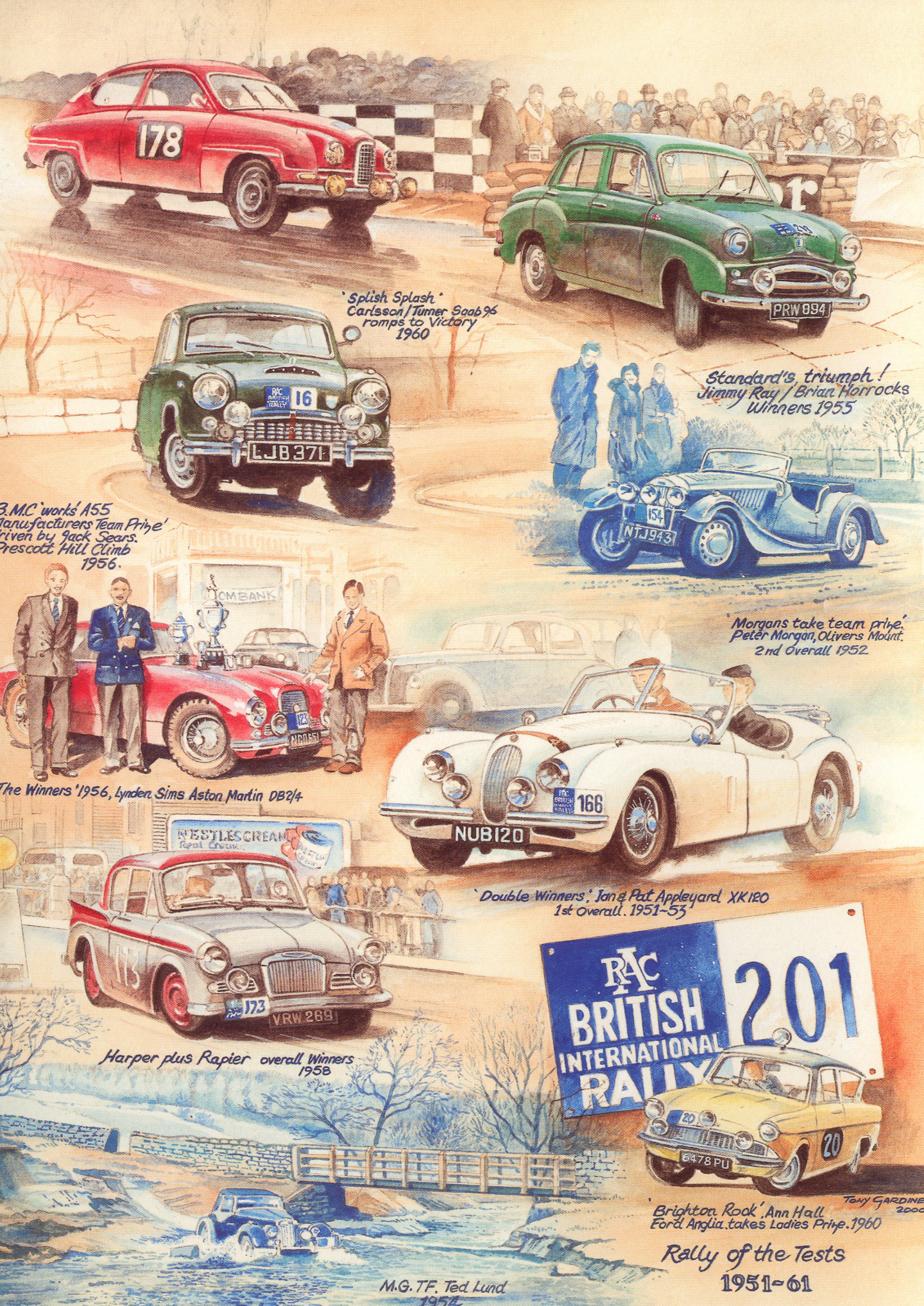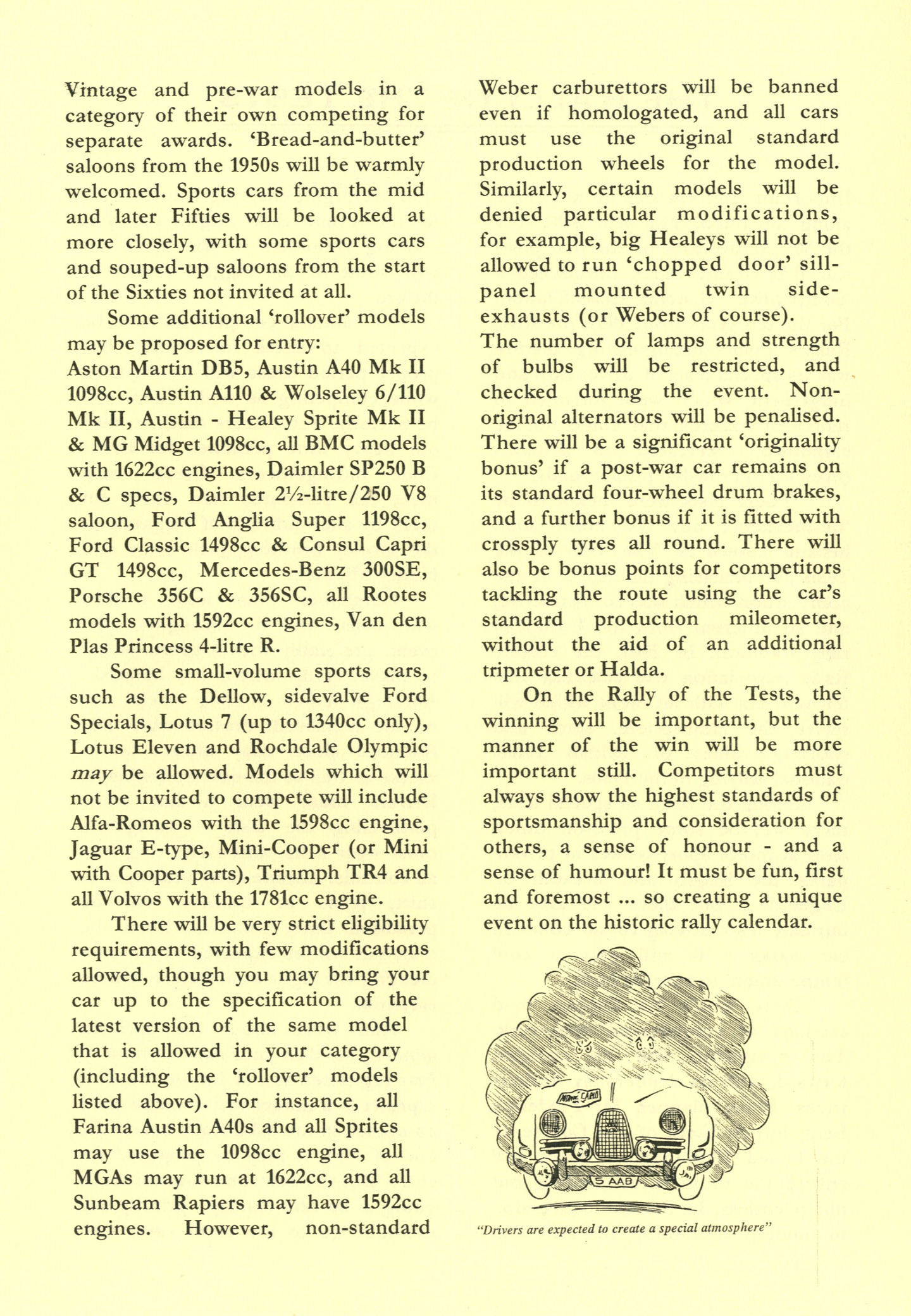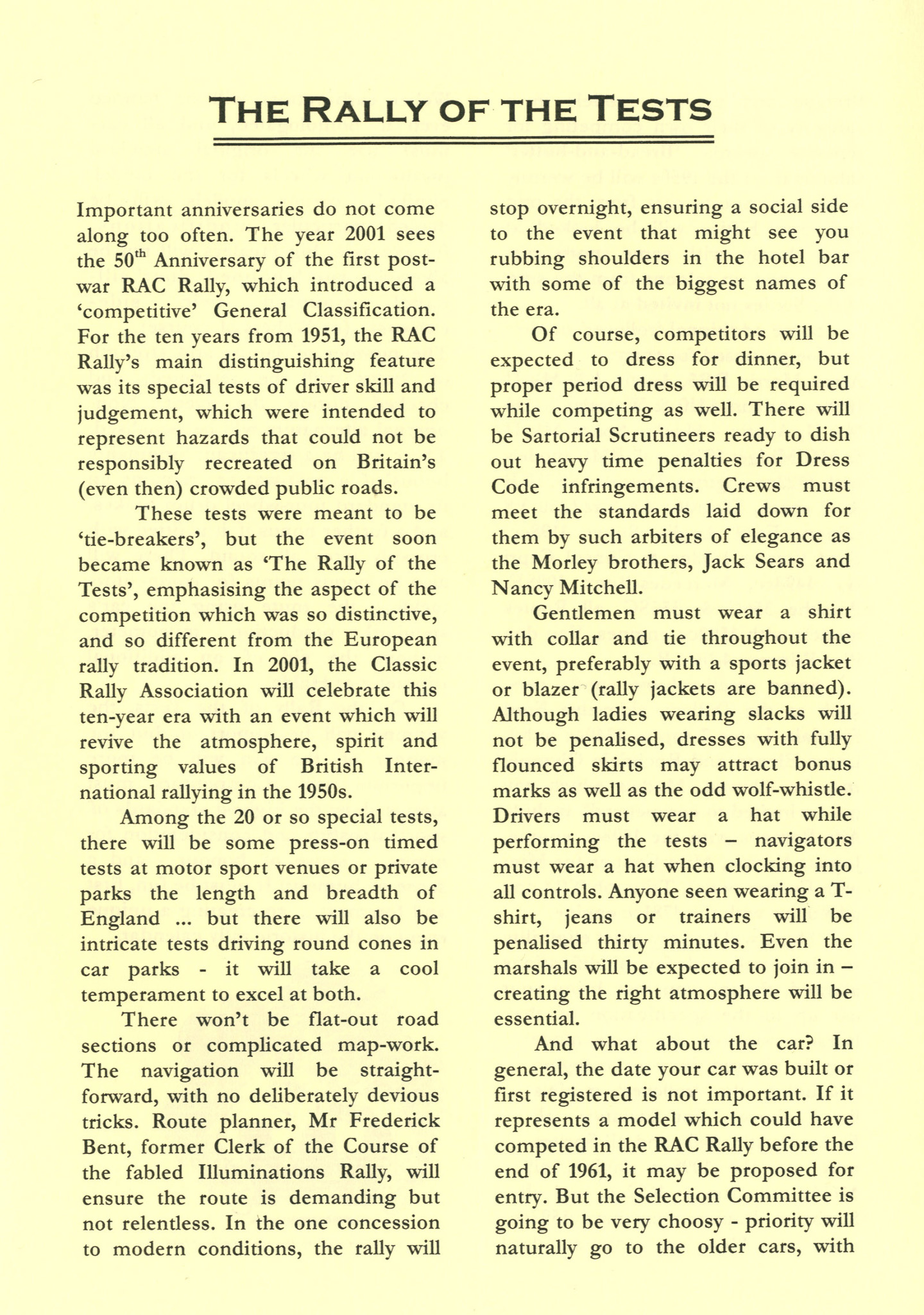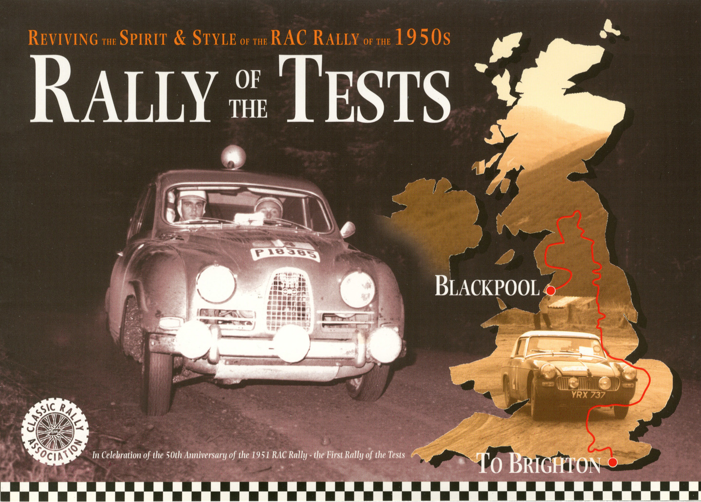 The 50th Anniversary of the RAC Rally was celebrated in great style with the Rally of the Tests revival-rally - 101 entries saw 98 actually set out from Blackpool promenade under the flag of the Mayoress....who sent starters roaring off down the super-long promenade test.