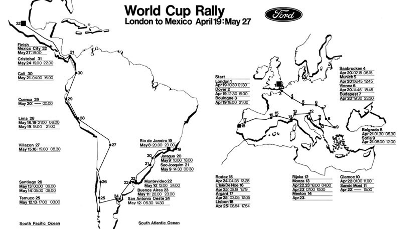 Wylton Dickson is the man whom we must thank for the madcap idea of driving from London to Mexico, as well as Paddy Hopkirk, who, after meeting Dickson at a drinks party, introduced the idea of rallying to a man who at that stage had no experience or knowledge of the sport. At that stage Dickson was in the advertising game, and the Aussie had come up with 1966 World Cup mascot, World Cup Willie. Hopkirk had used the London to Sydney Marathon as an example of what a rally was and Dickson was inspired, and continuing with the World Cup theme, concocted the idea of driving from the ’66 World Cup host city of London, to the event’s subsequent 1970 home of Mexico, along a 16,000-mile route through 19 countries. The European warm up leg would take place over a week, before a boat would ferry competitors across the Atlantic from Lisbon to Rio de Janeiro, where the proper adventure would begin. The rally traversed Brazil, Uruguay, Argentina, Chile, Bolivia, Peru, Columbia, Panama, Costa Rica and finally Mexico. But not before another boat crossing was thrown in for good measure to allow the caravan of cars to get past the (still) impassable Darian Gap.