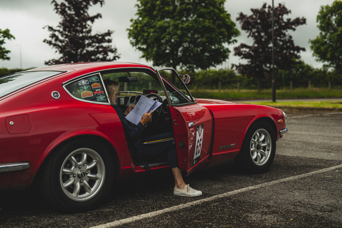 Lindsay and Nick Dawson, 1975 Datsun 240Z. Lindsay; “I’m really looking forward to it. We also have an MGB which is a little bit better on the tests as the Datsun is harder work, but the 240Z is bigger and faster!”