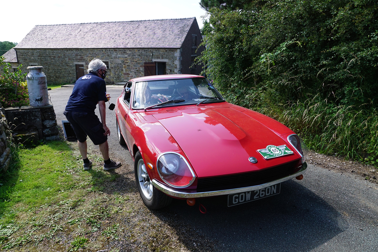 There were navigational challenges to catch the unwary, such as a speed change and instruction over the page in the roadbook to an unsighted Timing Point not far out from the coffee halt at the Duke of York, also occasional small turns into complex of farm tracks. One such regularity farm entrance was missed by a fair number of cars who ended up reversing to take the right track, much to the delight of the watching farming family observing the antics from their farm patio as sausages sizzled on their barbeque.