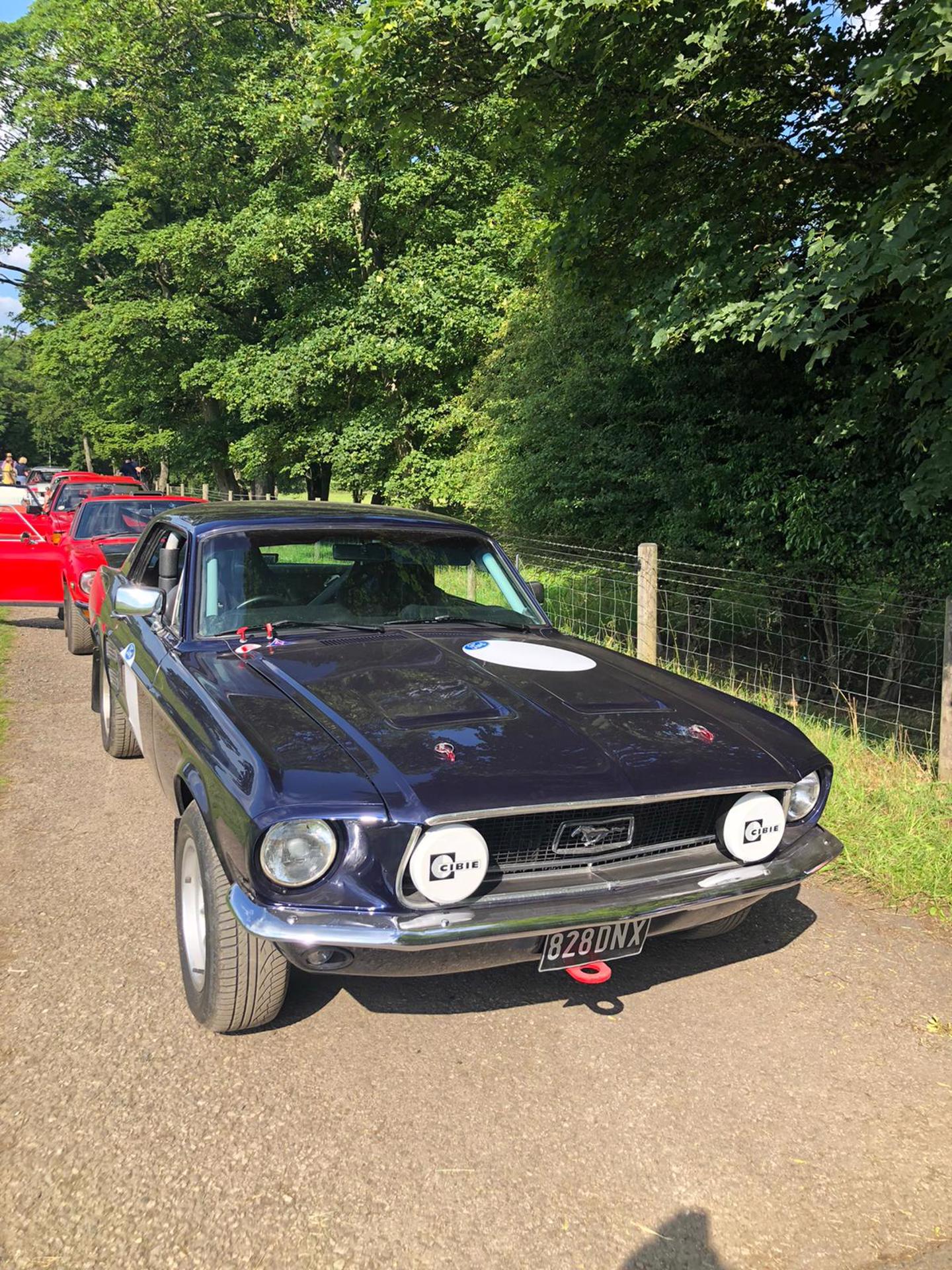 Paul and Gwyneth Steddy,1967 Ford Mustang. Paul; “Great, the Mustang is running fine, no I haven’t done much preparation work on it, it’s American, they never break down, allegedly! Some of the really narrow lanes can be a bit difficult for the Mustang. Compared to a Mini it’s a big handful but it’s got lots of power, good for getting it a bit sideways on the tests!”