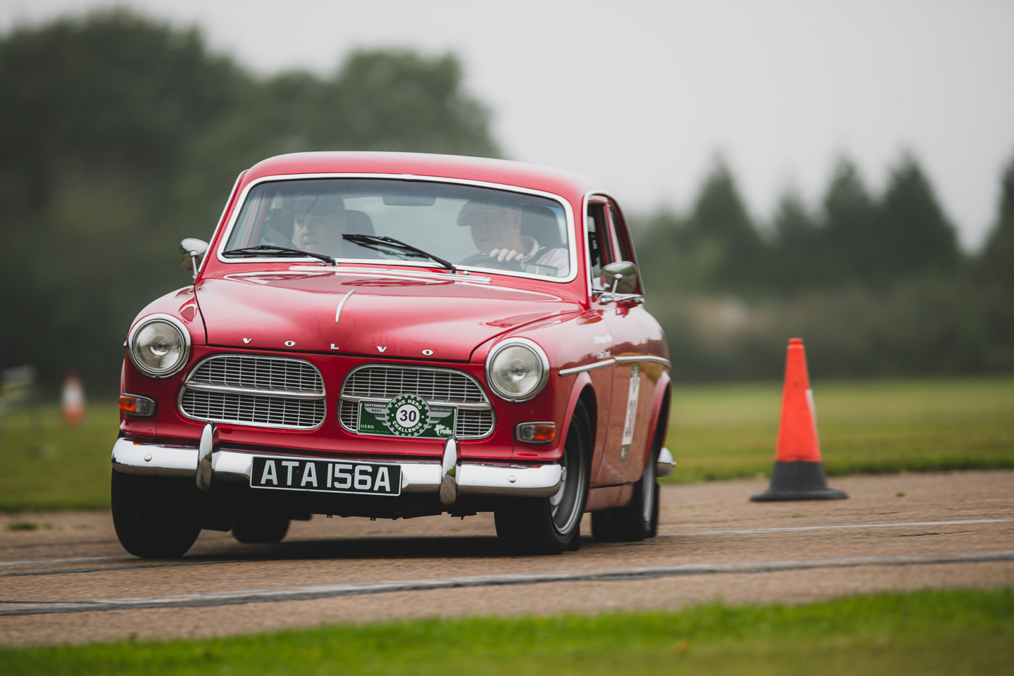 After a tense and thrilling finale of the HERO Challenge trilogy, Alistair Leckie and Matt Outhwaite hauled themselves back up the leader board after a difficult morning to take their third runner up podium in their SAAB 900 Turbo and snatch both titles away from the disappointed series leaders Angus McQueen and Mike Cochrane. Whilst Angus none started due to recovery from an eye operation, Mike Cochrane joined forces with Alan Pettit who provided his Volvo PV544 to act as the navigator’s championship platform for the points leader, only for Mike’s title hopes to lie in bits at the side of the road as the Volvo expired on only the second test of the day at Bicester Heritage.