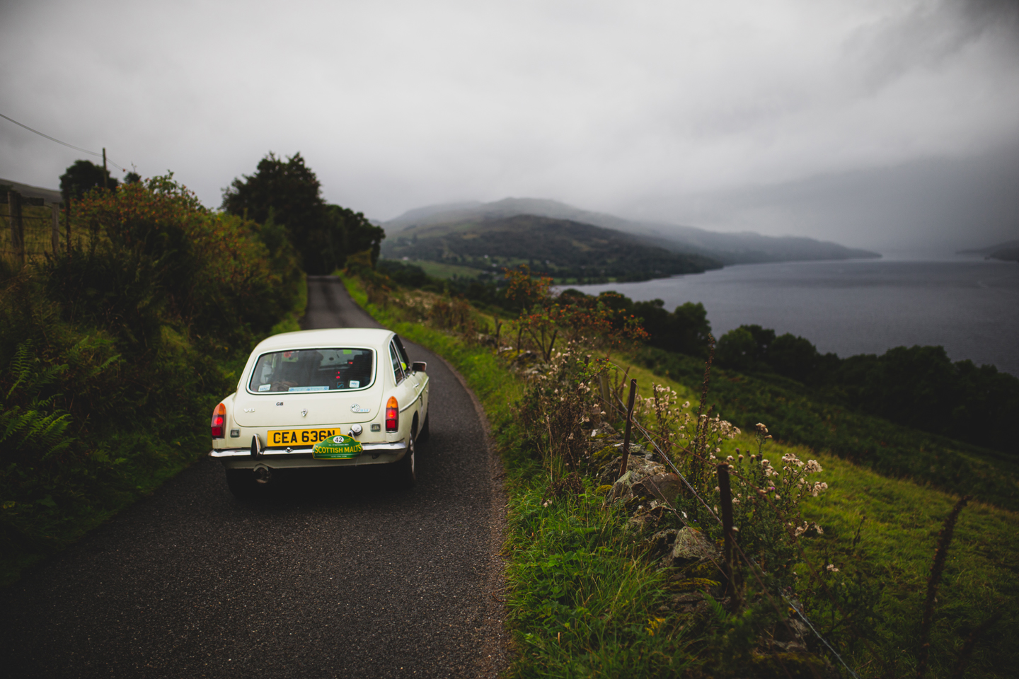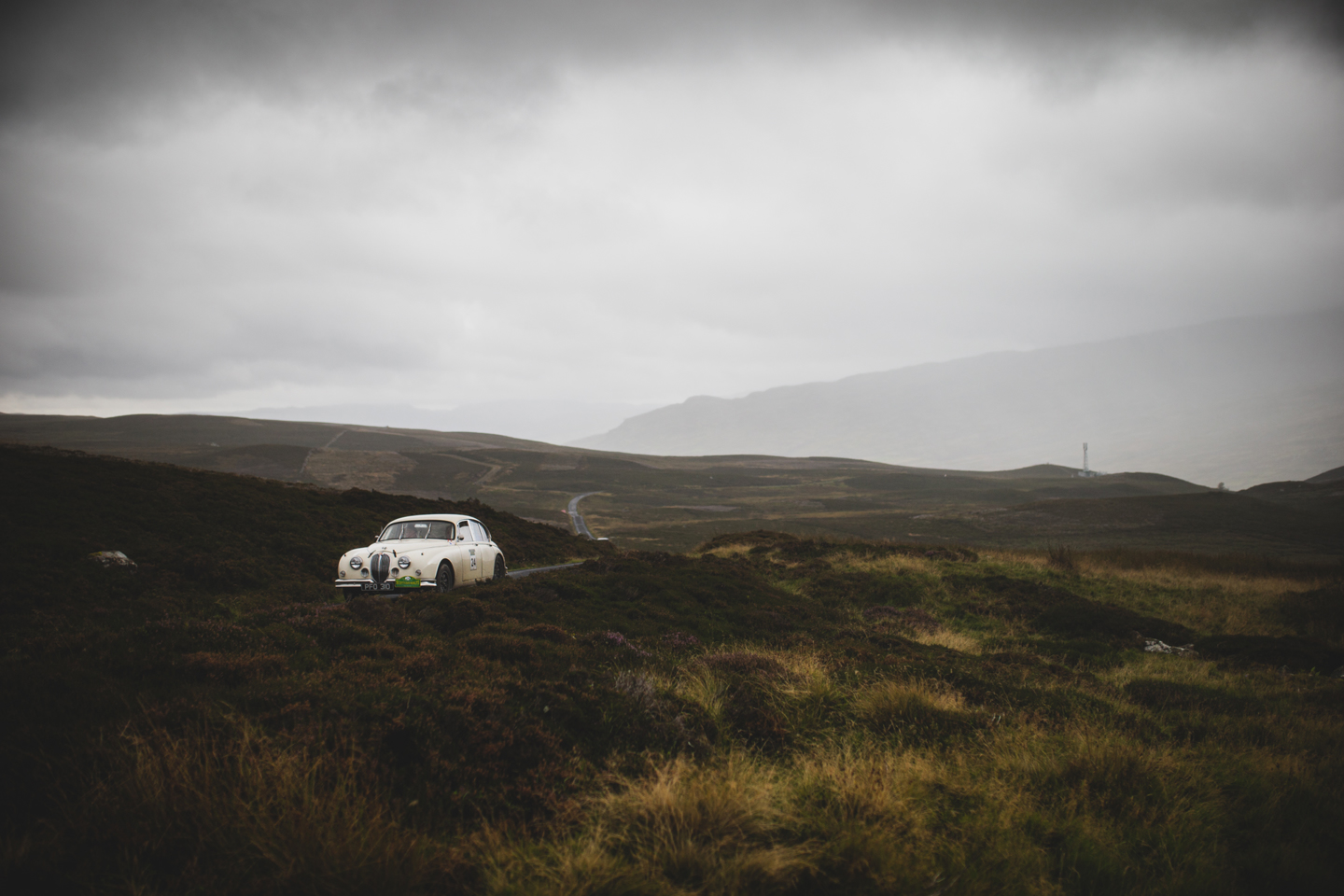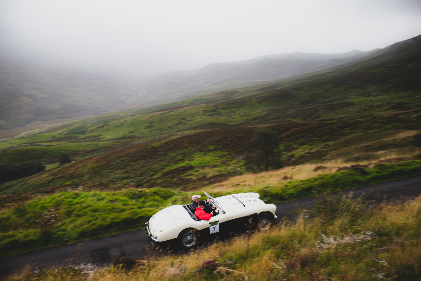 In fact, the opposite happened and with every passing mile the rain increased in intensity and the roads became ever more treacherous. By the time the test at Rest and be Thankful had begun the visibility in the valley was masking the usual tremendous views of Glen Croe and Beinn an Lochain, and the famous ribbon of tarmac was more waterfall in some spots than road. Steady away was the order of the day, although some did suffer minor moments on the ascent and the Porsche 356 of John and Moira Hilbery suffered some mechanical troubles forcing them to sit stranded on the side of the test as all others went past.