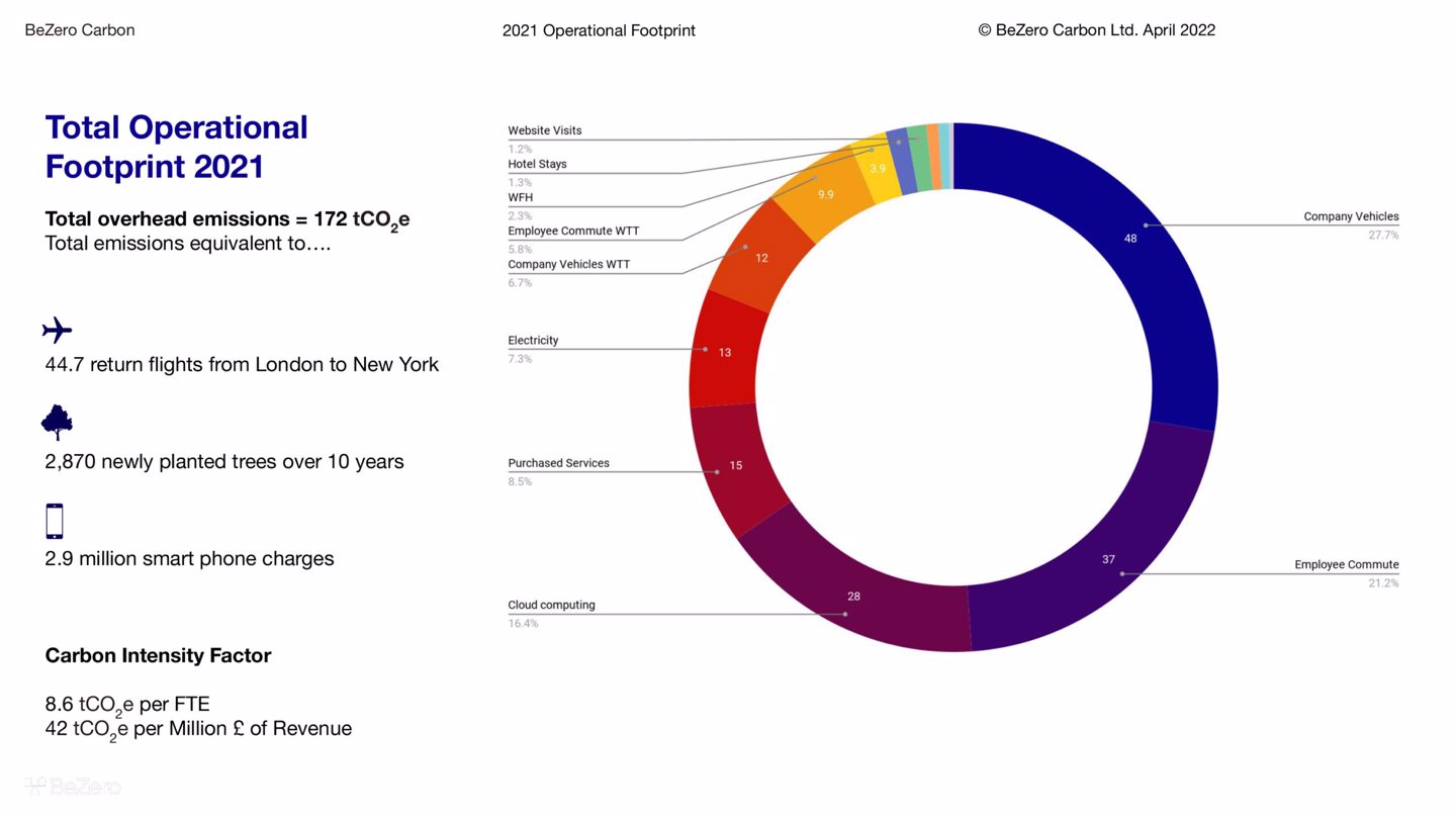 Indirect emissions calculated include employee commuting, business travel, waste generated in operations, fuel and energy related activities. Direct emissions include company facilities both in London and Bicester, together with company vehicles including when they are on event.