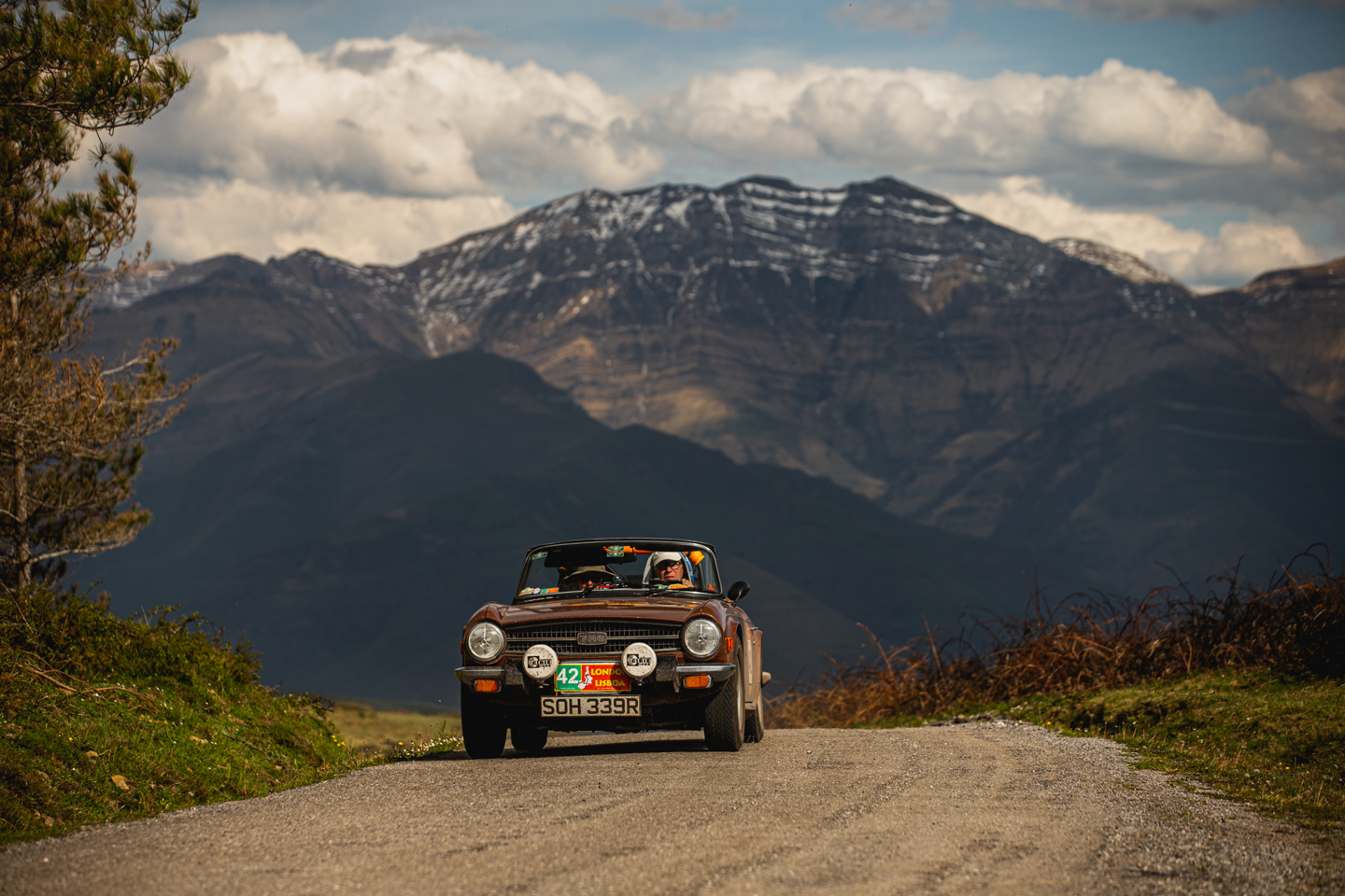 Sliding upwards almost unnoticed through consistent stealth, but with serious intent, are Nick Maris and Henry Carr in the Datsun 240Z, their challenge today almost thwarted by a flock of sheep blocking the road! At one point the sheep herder sitting astride her donkey did explain in Spanish that the sheep always come first! Stephen Owens and Pete Johnson hold third in their Porsche, whilst another 911 of Flying Scotsman award winner Tony Sutton and the experienced navigator Bernard Northmore, are an impressive fourth just four seconds behind Stephen and Pete.