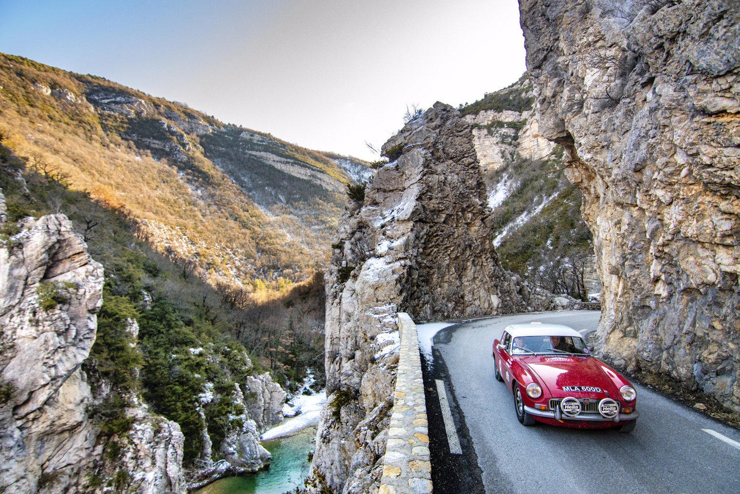 The Col de Perty, Col Saint-Jean were just two magnificent climbs up famous rally roads as steep as their history. The descents were just as spectacular, through the Gorges de la Meouge for example, whilst the regularities through the vineyards were taxing where drivers had to be as neat as the rows of vines in the winter sunshine. Sisteron is another famous Monte Carlo rally stage which was pretty slippy in parts and narrow with just low walls in places to stop a car from going over the edge.