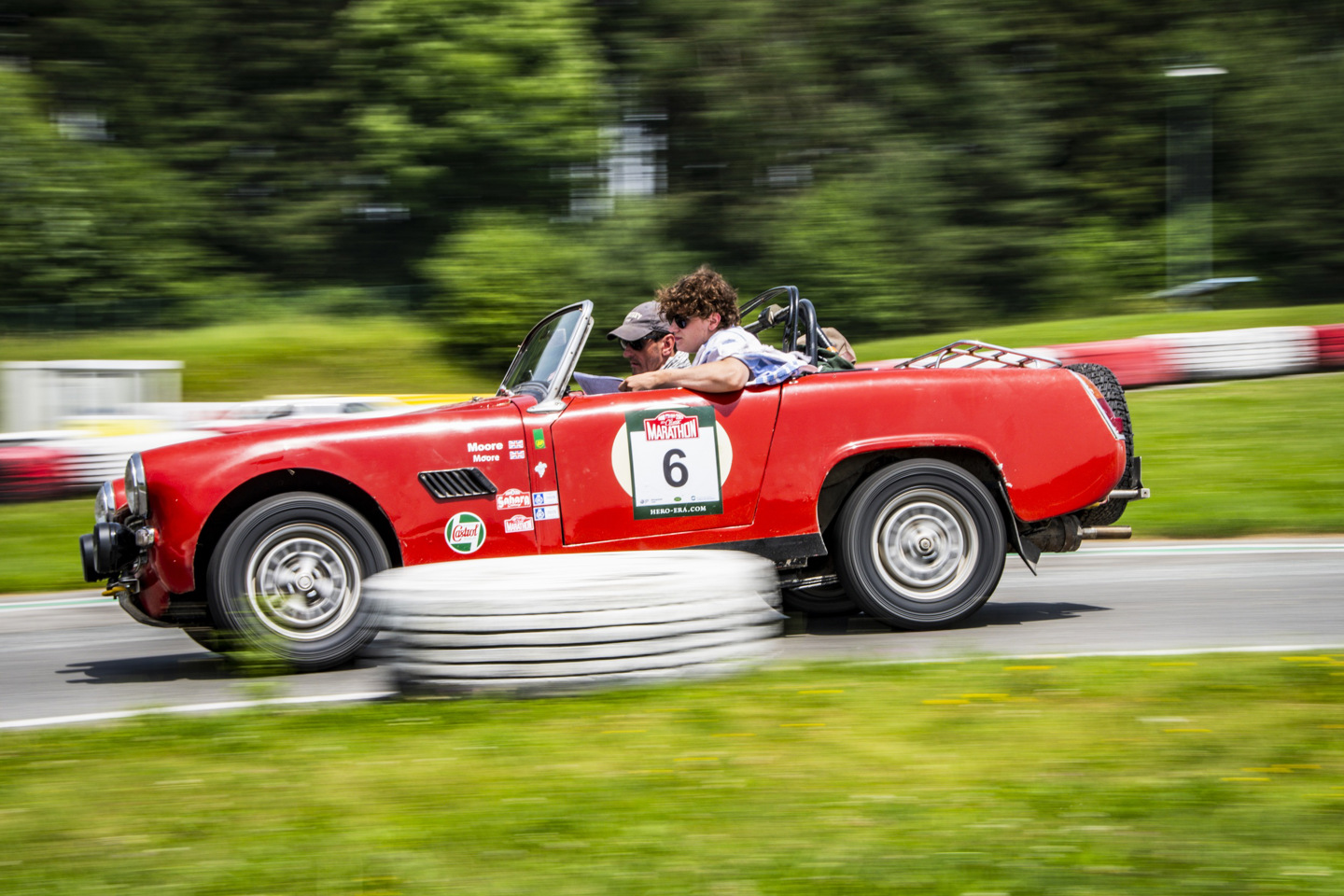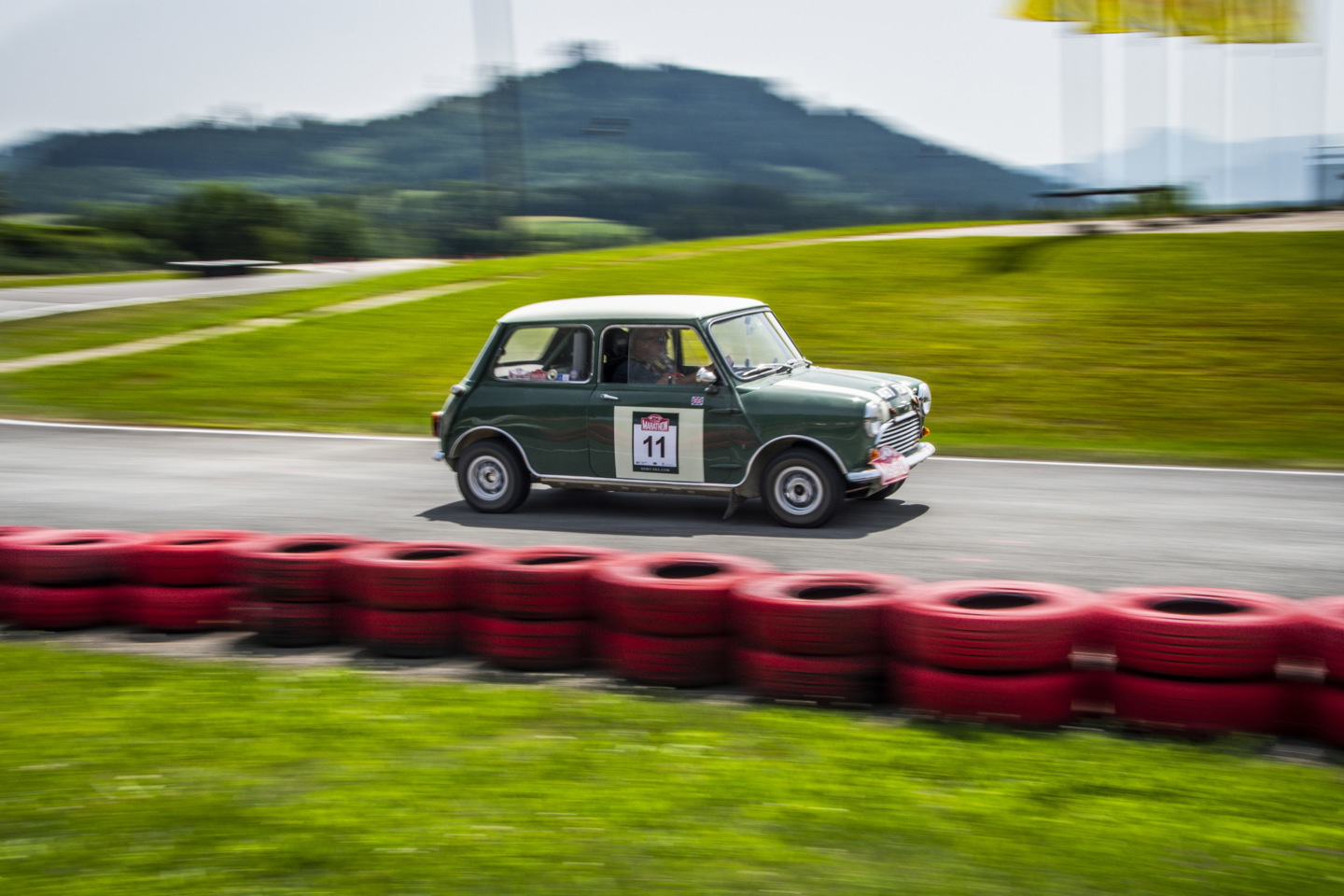 At least the border into Austria was a simple affair, with the uninterested border officer barely managing a glance up from his newspaper as the cars passed. I daresay he didn’t fancy stepping out of his air-conditioned office into the afternoon sun, and who could blame him, it was another very hot one. The heat was particularly prevalent on the first of the day’s tests, at the FTZ Mobling Kart Circuit, which is built into the side of the hill and offered up the challenge of multiple elevation changes, rewarding those that could carry their speed. The tests even saw our top two go almost head-to-head on track, with the Porsche harrying the E-Type around the brightly painted curbs of the track.