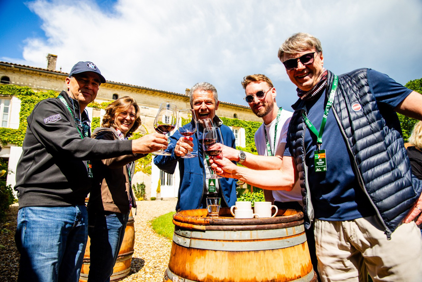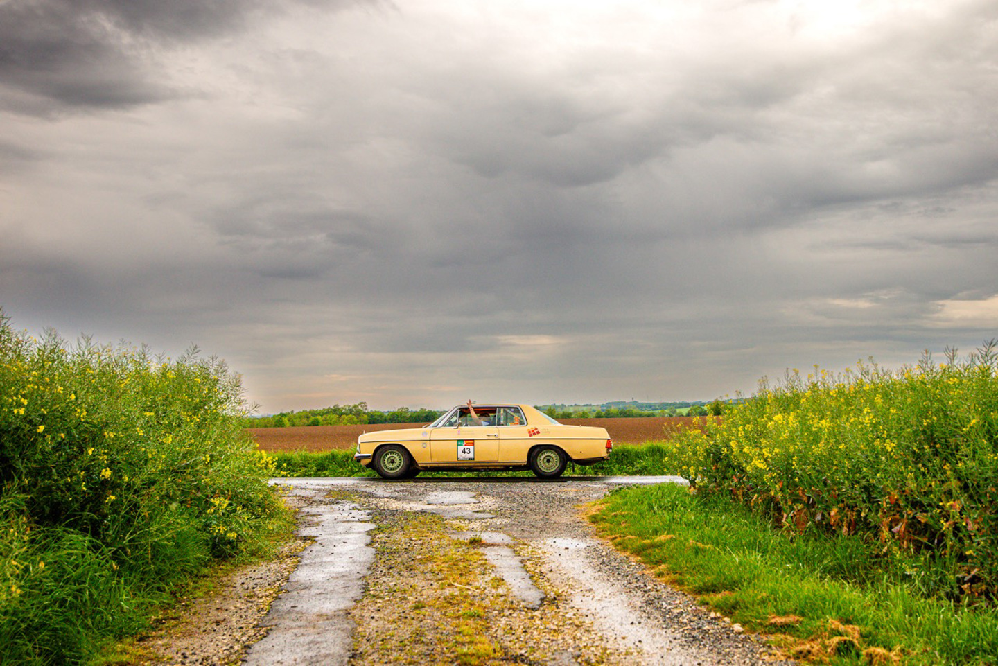 The worst of the storms really were saved for the afternoon, with a proper deluge on the final two regularities and transit sections, but the reward for getting through it was a final time control of the day at the fabulous Chateau Meaume, a winery that has been garnering a lot of attention recently. Clearly the owners of the gorgeous building, once the residence of Louis XIV’s bodyguard, are blessed as the storm clouds cleared and the sun splashed down upon the estate – Louis XIV was known as the Sun King, so perhaps there was some divine intervention at work. Those who were not driving were even invited to sample the product, and for those that did need to remain behind the wheel there was plenty of coffee and cake instead.