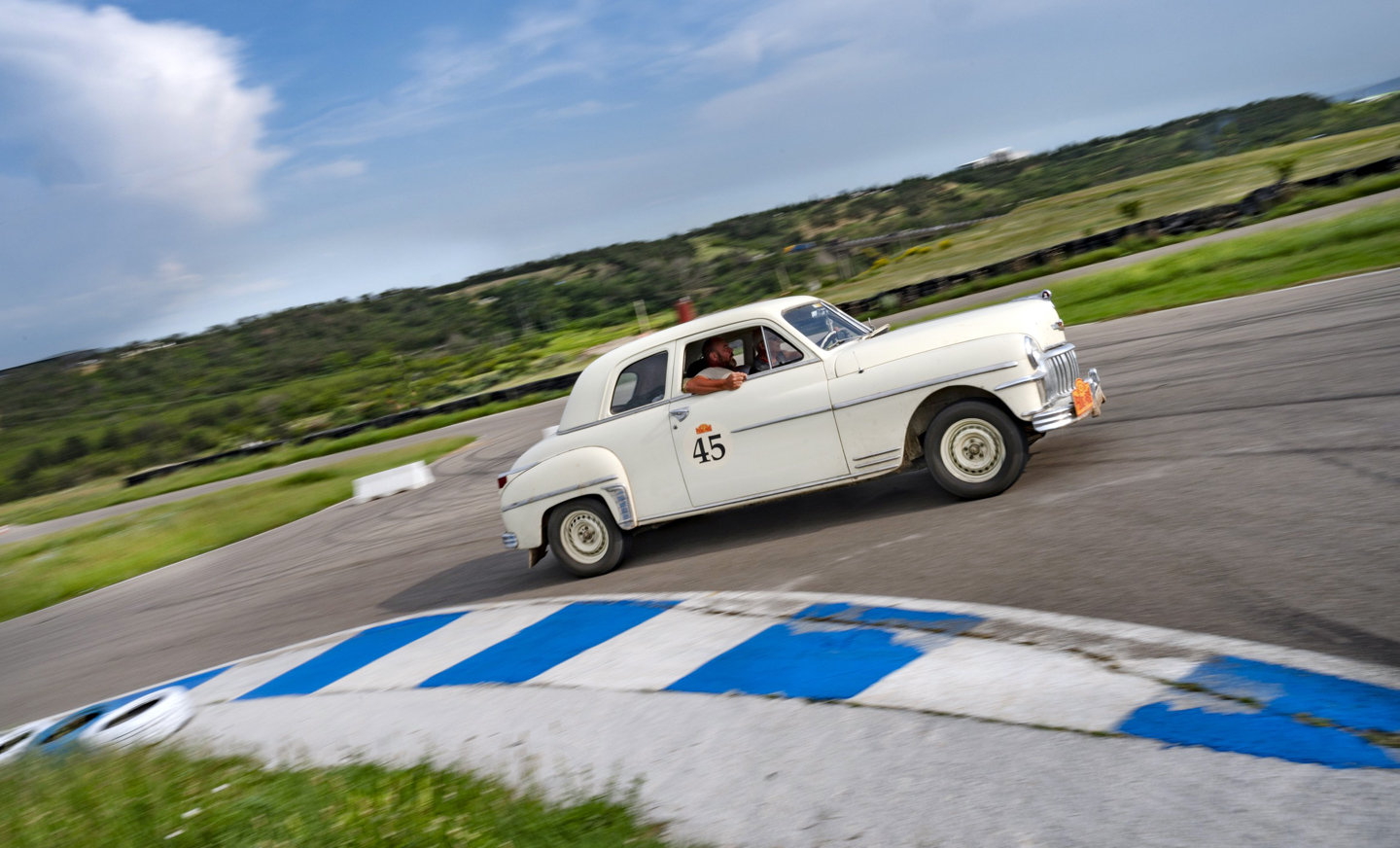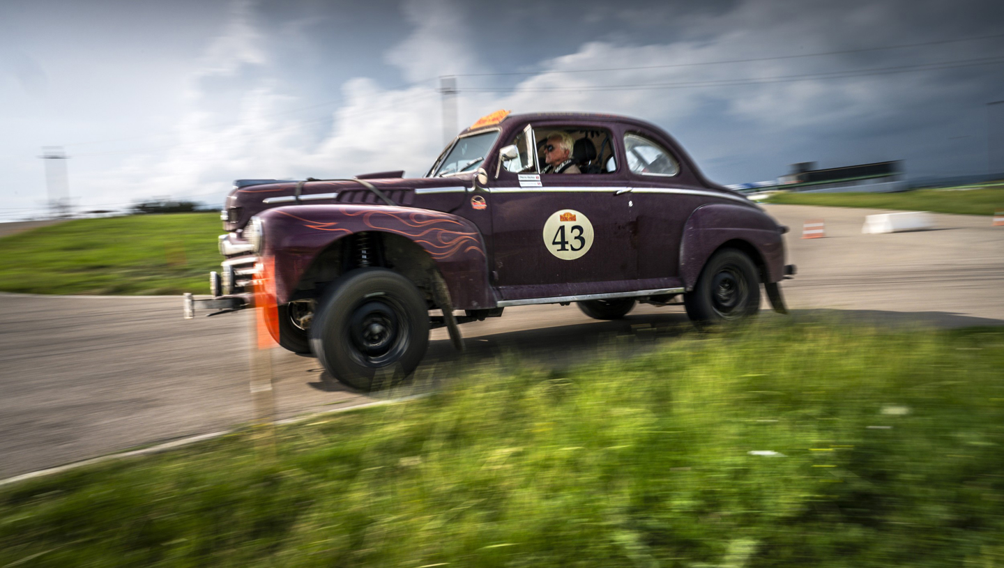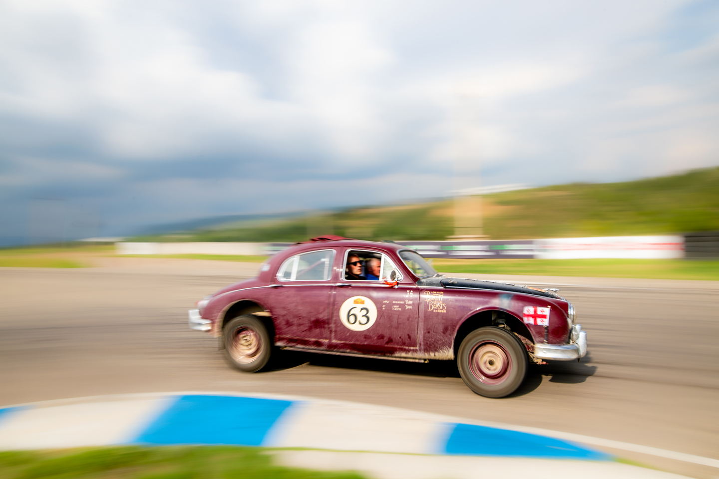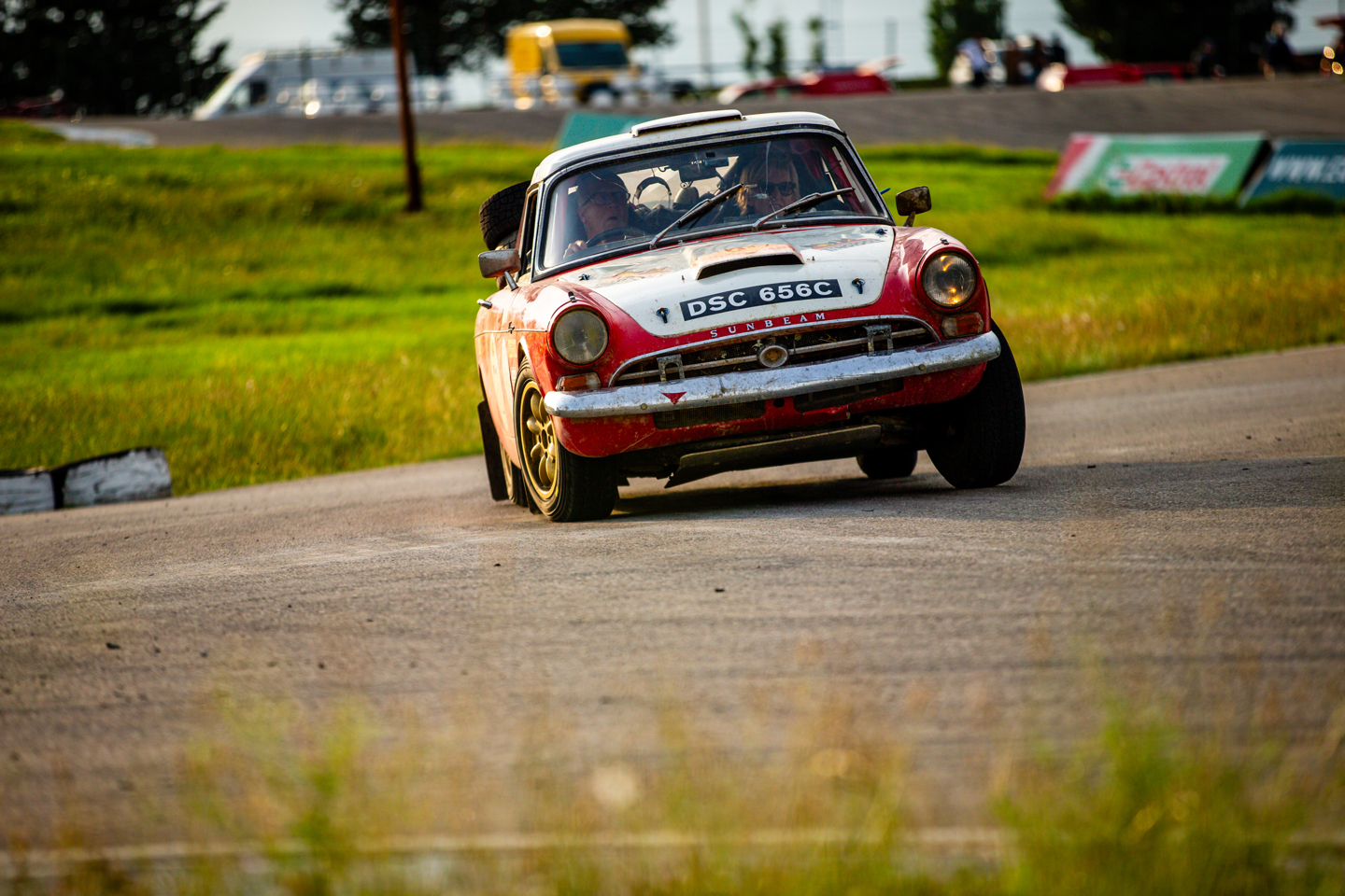 Richard was fast regardless, of course, no less than you would expect from a former Truck Racing Champion, and the quickest vintage car by some way, and taking to task some of the faster Classics as well. Fastest though, was split between another former racing driver, Patrick Watts, and Matt Bryson, who both set times of 52 seconds. You couldn’t get two cars that were more contrasting, indeed the big Leyland of Matt and Mike Pink looks as though it could eat the diminutive Sunbeam Tiger of the Watts, but both drivers were dancing the cars around the circuit, drifting on the sticky, hot tarmac and mastering the climbs up the hills with ease.