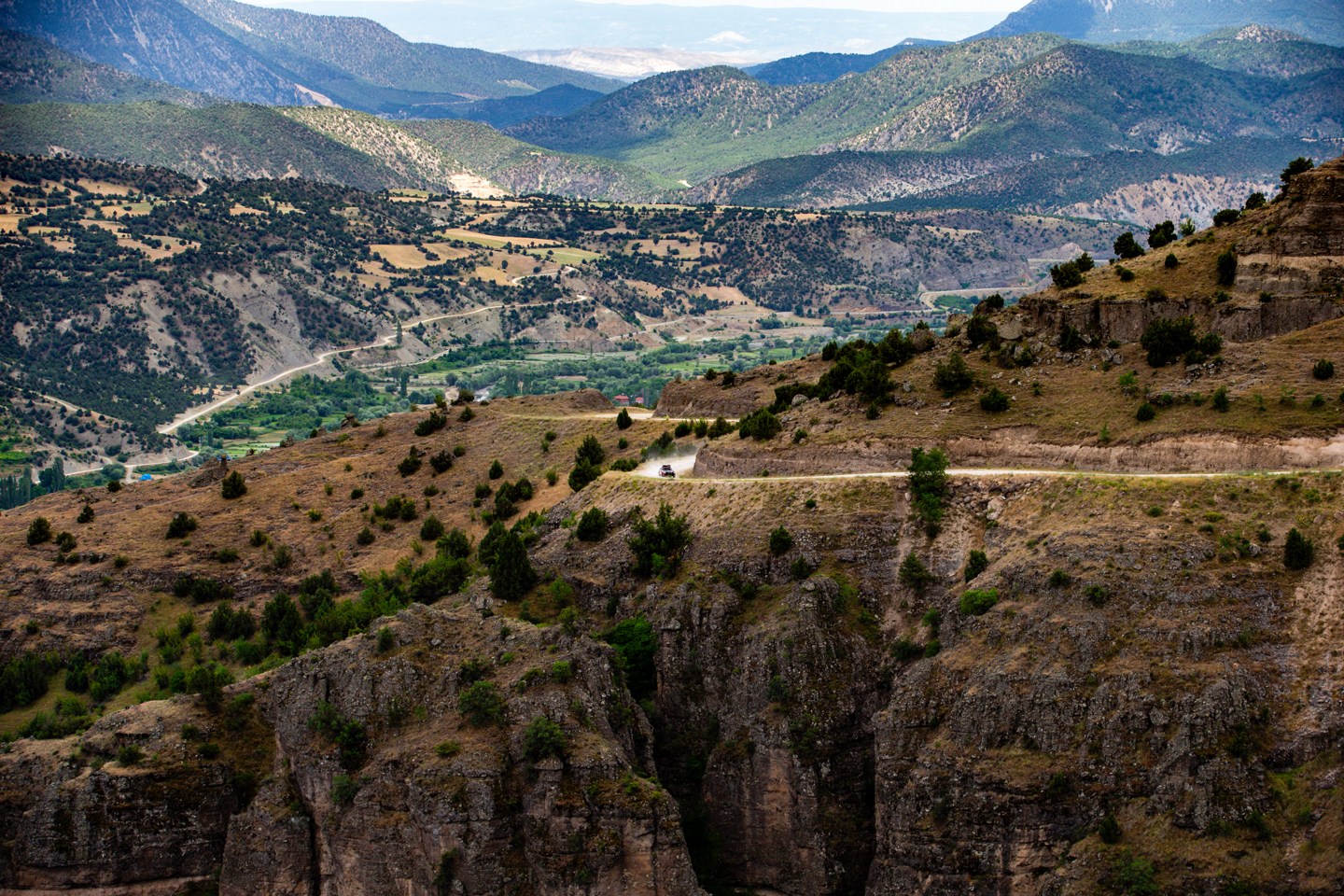 It won’t matter much to them at the minute, but the incident also stopped them from enjoying one of the best driving days of the rally so far. The roads were tremendous, a glut of twisting, turning and flowing mountain stretches, that climbed and descended in the midst of incredible scenery, far reaching views and gargantuan rock formations. Anyone with an aversion to heights may not have enjoyed it quite so much, but for those who were brave enough to peer over the edge as we drove the visual reward was magnificent.