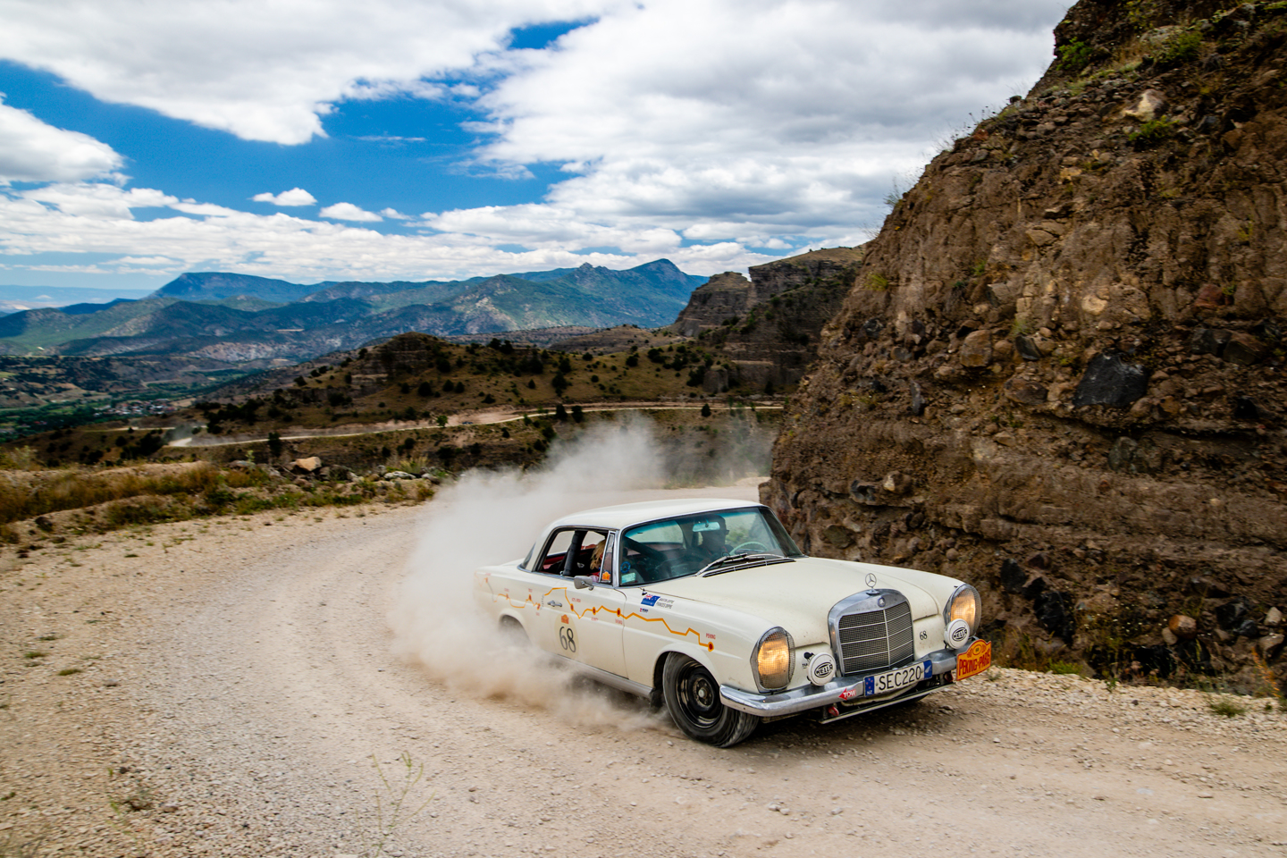 Once the regularites had been concluded a run across the plateau of the mountains served as entertainment, followed by a drop down to the valley floor and then a run along a three-lane motorway for the first time in a long time. This was an experience in itself and showcase some of the most terrible driving we have seen across the entire trip. Speed, along with aggression and a serious lack of talent was on display from many of the locals, with plenty of examples of undertaking on the hard shoulder, and instances of drivers filtering between lanes at speed, as if they were on motorcycles. It was like something out of a computer game, and for those in the less powerful cars, such as Wim Van Gierdegom and Arne Quinze, it must have been somewhat terrifying. Special mention must go to the Belgian pair in car number 3, the tiny Chrysler Roadster, not just for braving yesterday’s highway, but for persisting with the route in a car whose speed could be described as modest at best. There is little protection from anything for them, from poor road surfaces, from the elements or indeed from other traffic, and yet here they are, into Europe and still with a Silver in the medals table.