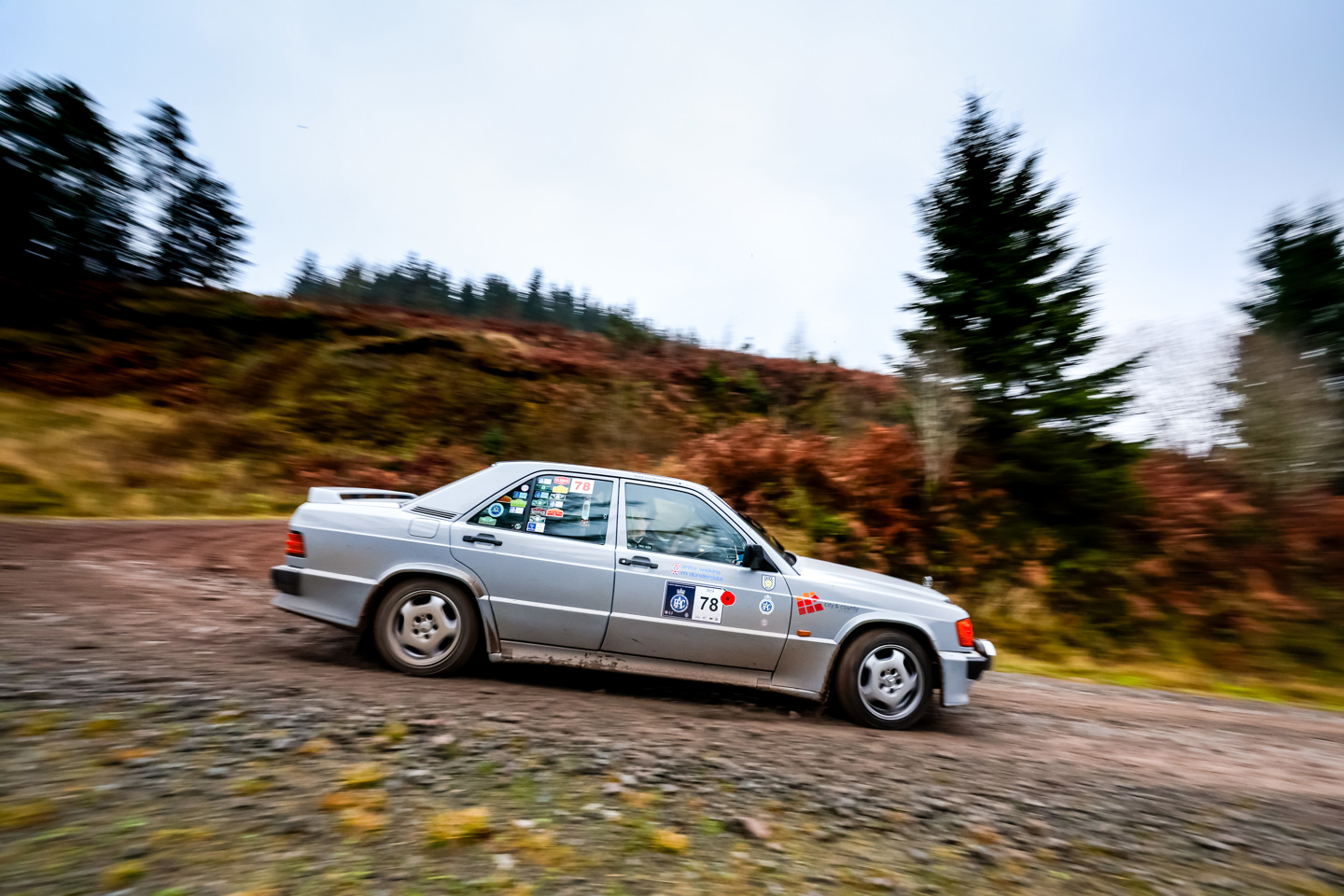 Following a short lunch break at the ‘Pink Palace’ of Drumlanrig in Scotland, crews went straight into a regularity, but not just any tarmac reg winding around the lanes. No, this started in front of the magnificent Drumlanrig Castle, taking crews around the slippery roads of the estate before heading onto tarmac then suddenly off road and into the forest! There were climbs up the forest hillsides then harpins and narrow gravel roads under canopies of close trees – it certainly had a Heinz 57 Variety all in one regularity called High Enoch, then the glorious and smooth Forest of Ae often used in Rally Scotland, the RAC and the BRC.