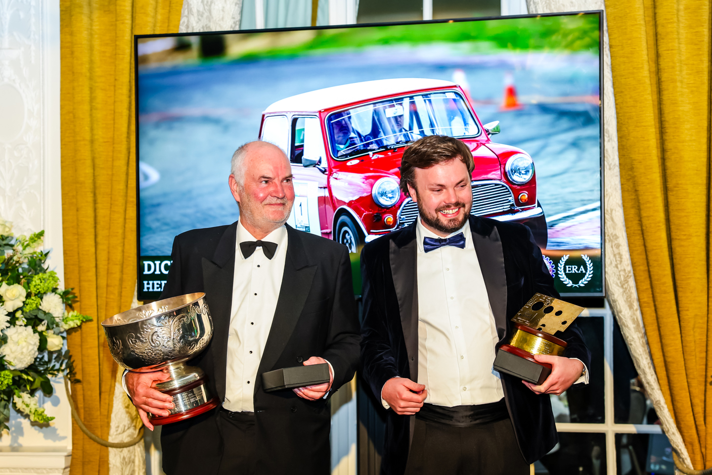 The main focus of the awards is of course the winners of the HERO-ERA Cup for the best overall driver and Golden Roamer award for the best overall navigator, fought over the eligible HERO-ERA rallies across the season and always hotly contested. This year the HERO-ERA Cup went to popular Father and Son competitors Dick and Harry Baines, with their triumphant Austin Mini displayed in the clubs famous Rotunda. Dick is famously a man of few words, and in continuation with tradition left son Harry to speak on his behalf. There was a celebration of Dick’s motorsport history though, with a slideshow of photographs charting his journey from oval racing to rallying, including competing in the year 2000 London to Lisbon in the car that he and Harry still campaign, and indeed won the 2022 London to Lisbon in.