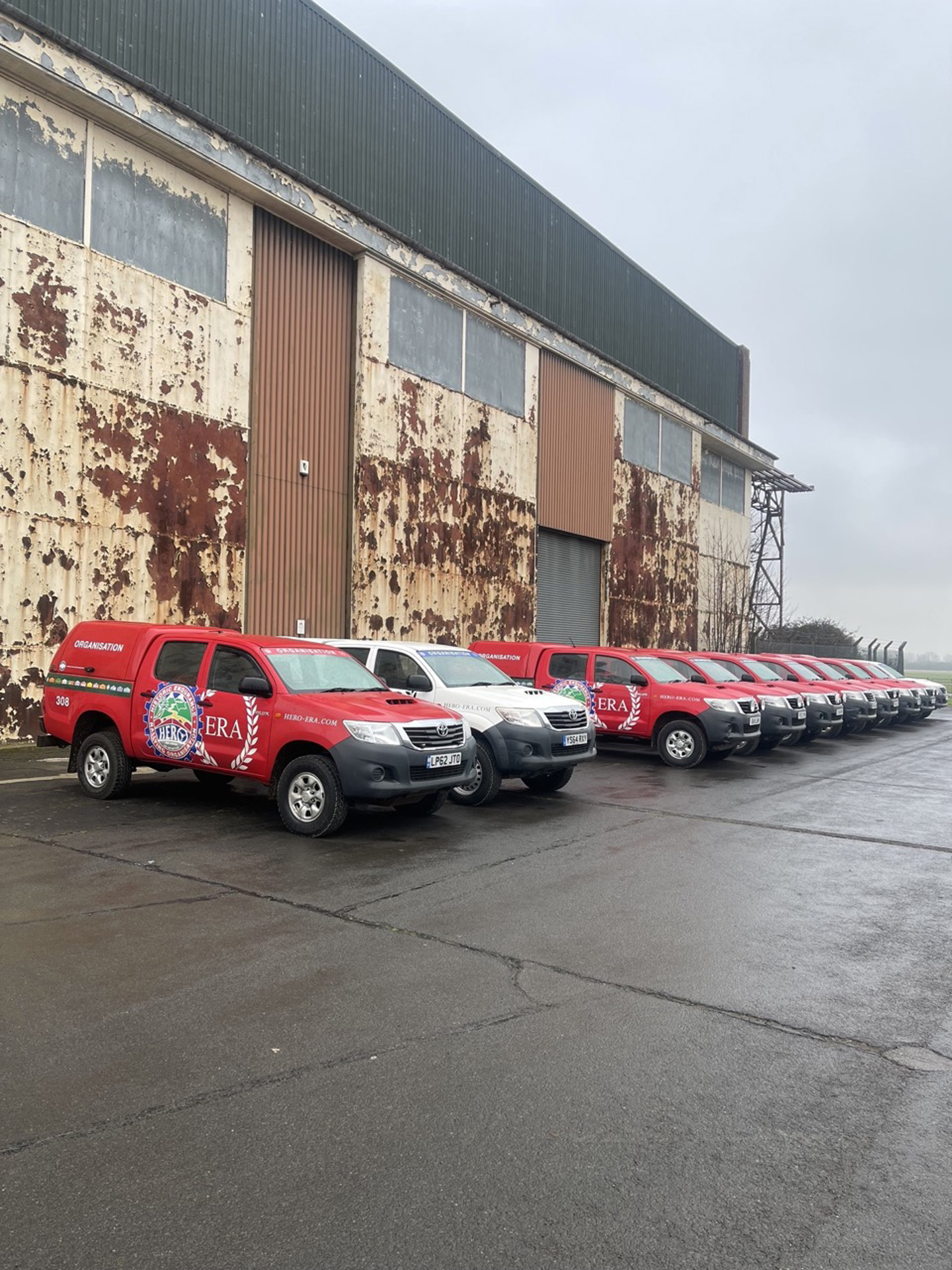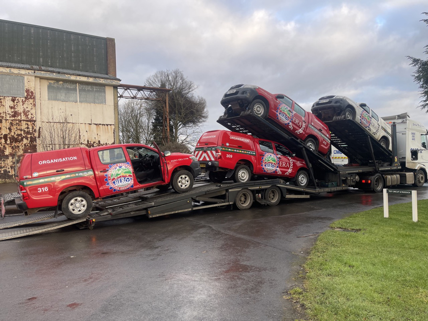 The first vehicular movement of the 2025 Peking to Paris Motor Challenge took place at the home of HERO-ERA, Bicester Heritage, on Tuesday 4th February. Ten 4 x 4 Toyota Hilux support vehicles were loaded onto three huge transporters to begin their long journey to China to be ready for the start of P2P in Peking on 17th May.