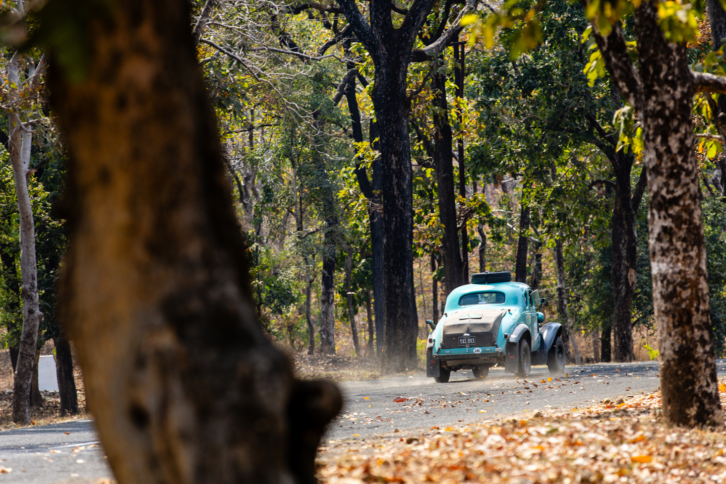 The rallying day began at midday, with 15 cars signing out of the MTC, heading out on a 306km route with a pair of regularities to contest at either end of the afternoon. The first of these was a mere 34km into the day, and occurred within the same forest that we had spent the night in. The trees here seem to be in a perpetual state of flux between the seasons, with some shedding leaves, and some wearing blossom as winter turns to summer in this monsoon climate.