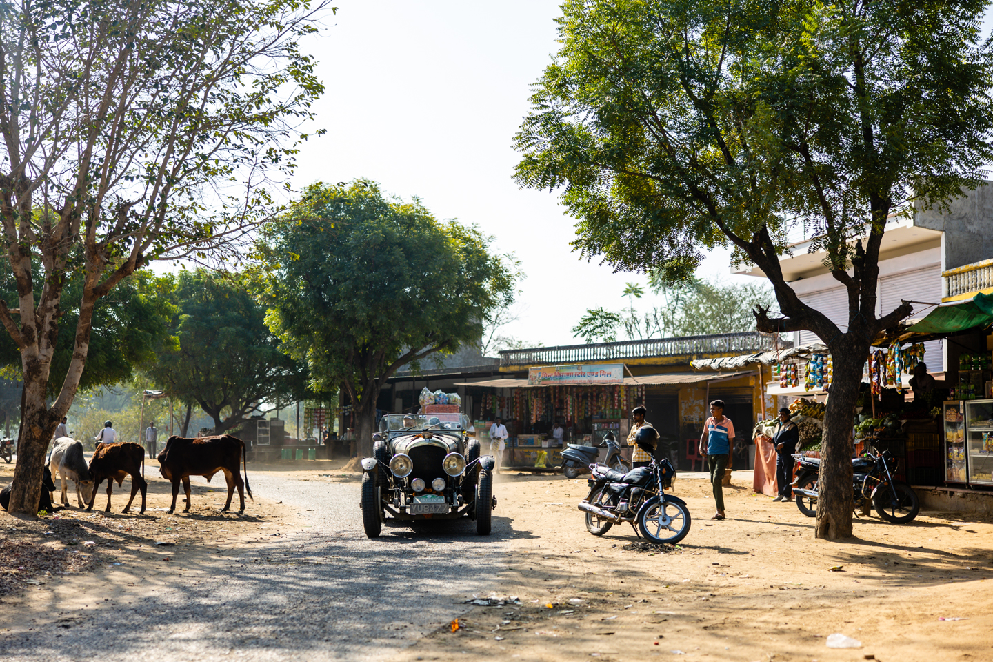 After getting their daily steps in at the historic monuments, a run through the countryside followed, with some nice roads that cut a ribbon through farmland, flanked by rocky hillsides. There were of course plenty of narrow villages to travel through, a pre-requisite of any drive through India, and rough roads as well, with one particularly tricky stretch that had been pulverised to sand by the constant construction traffic that was using it as an access road for delivering aggregate. Of course, when I say construction traffic, I mean classic Mahindra and Massey Ferguson tractors, dragging overloaded trailers full of stone. It made for a bit of fun in any case, especially those caught in a train of cars.