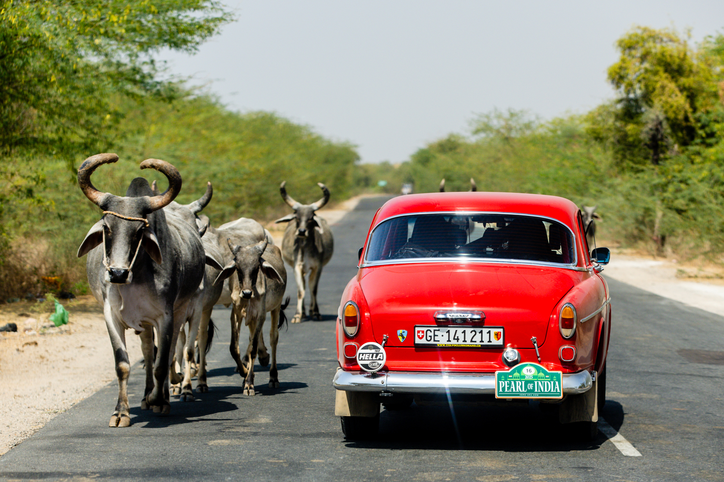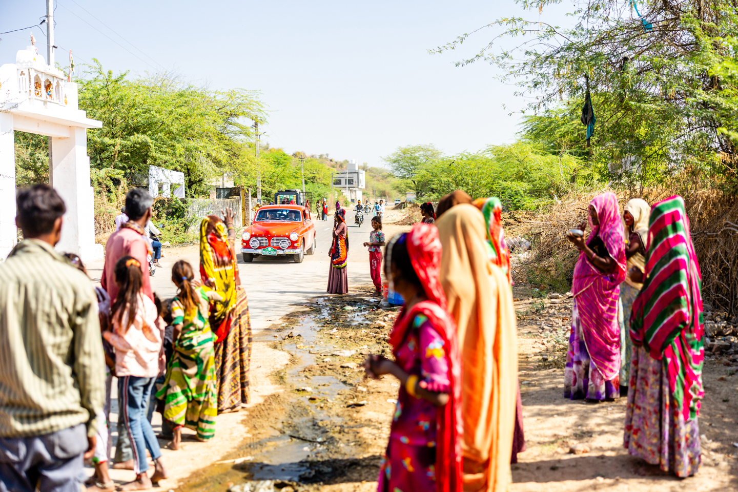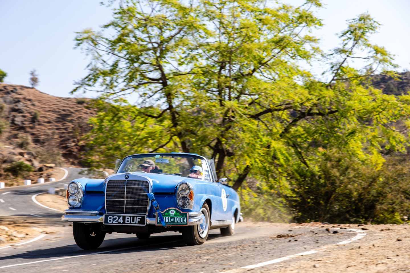 As the day drew on, the landscape began to change, as we crept into the fringes of the Thar Desert, with rock and sand replacing the rich soil of the regions we had passed through up until now. In its extreme, it is an unforgiving place and not somewhere anyone would want to suffer mechanical issues, especially off route. Unfortunately, that is exactly what happened to Peter and Debbie Fitzcharles in the beautiful blue Mercedes Benz 220. It’s fair to say the car has been behaving like a petulant teenager, huffing and stamping its way along so far, refusing to budge multiple times. This latest stoppage was just another in a long line of fuelling problems the couple have been suffering in the heat, but on this occasion, they were some way off route after a wrong slot and had to walk back to civilisation and wave down a travelling marshal. They would arrive late at the camp on the evening of day 5, but they are persisting and refusing to let the mechanical tantrums get them down.