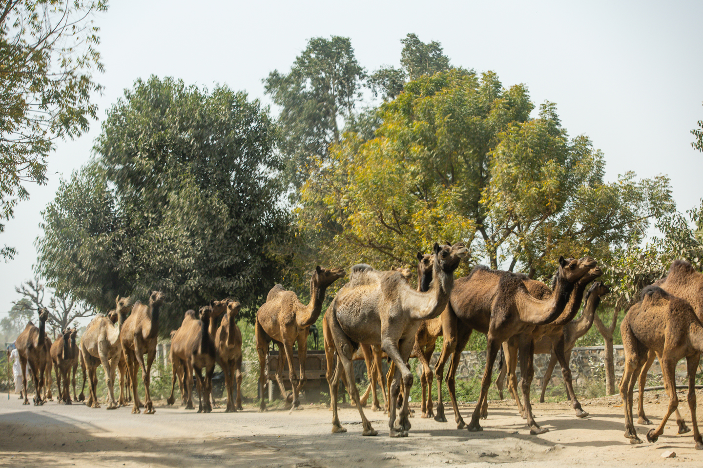 There was a distinct change in the way the roads were though, they started to become quieter. There was still plenty of traffic, but by Indian standards these were practically empty. Whilst the traffic decreased, the number of animals inhabiting the highways increased, with plenty of Dogs, Cows, Monkeys and Camels to dodge along the way. The Cows in particular were a problem, the bigger Oxon with their grey hide were camouflaged against the road surface and thought nothing of nonchalantly strolling into the middle of the carriageway and stopping to stare, offering little room to pass on either side.