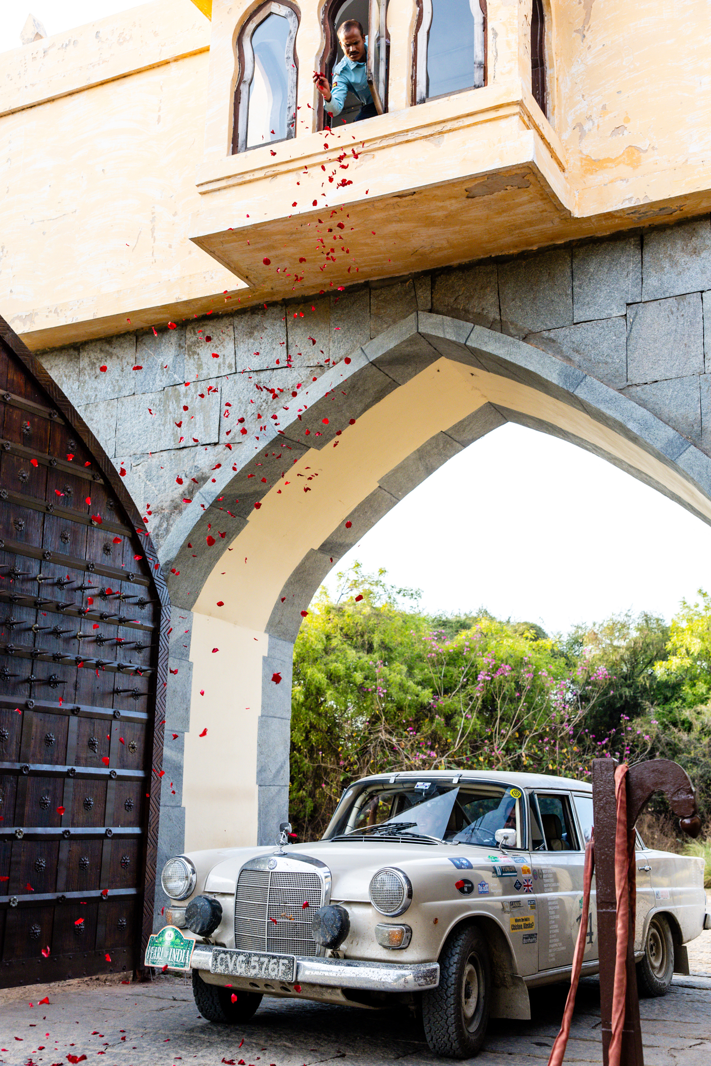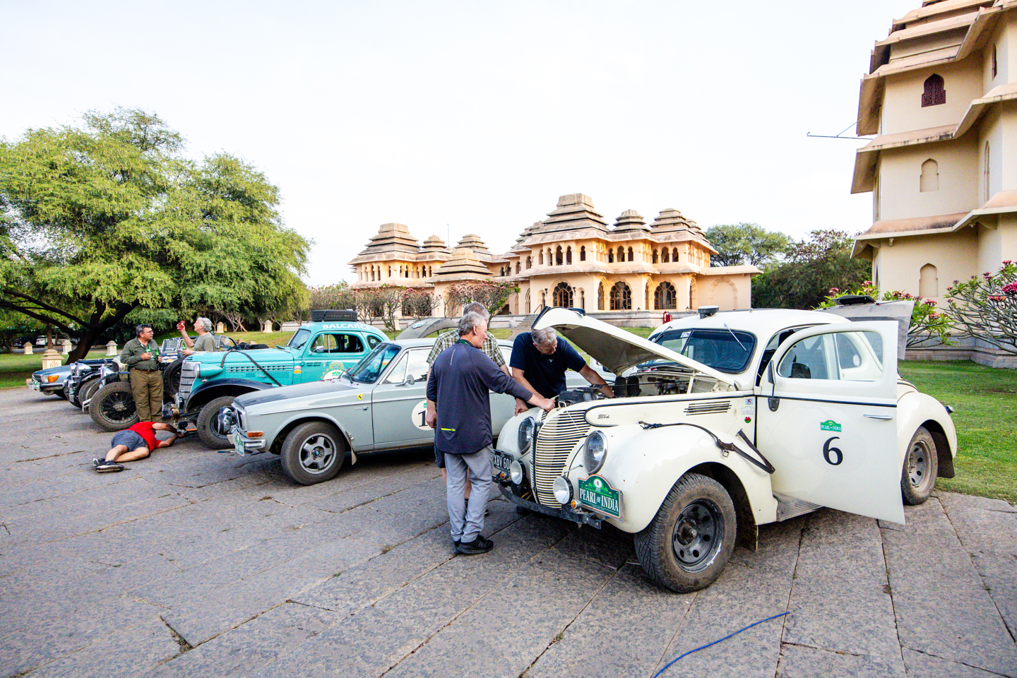 The regularity was only a few kilometers from the PC, but sadly the roads were so busy it had to be scrubbed, and so a 50km run into the midpoint time control followed, on a mixture of rough and reasonable roads, and then a busy run through the town of Raichur. The temperature gauges were going through the roof, and I don’t need to tell you that car 10 was forced to pull over, waving their ok board above the crowd of interested people that gathered around to check out the beautiful Mercedes.