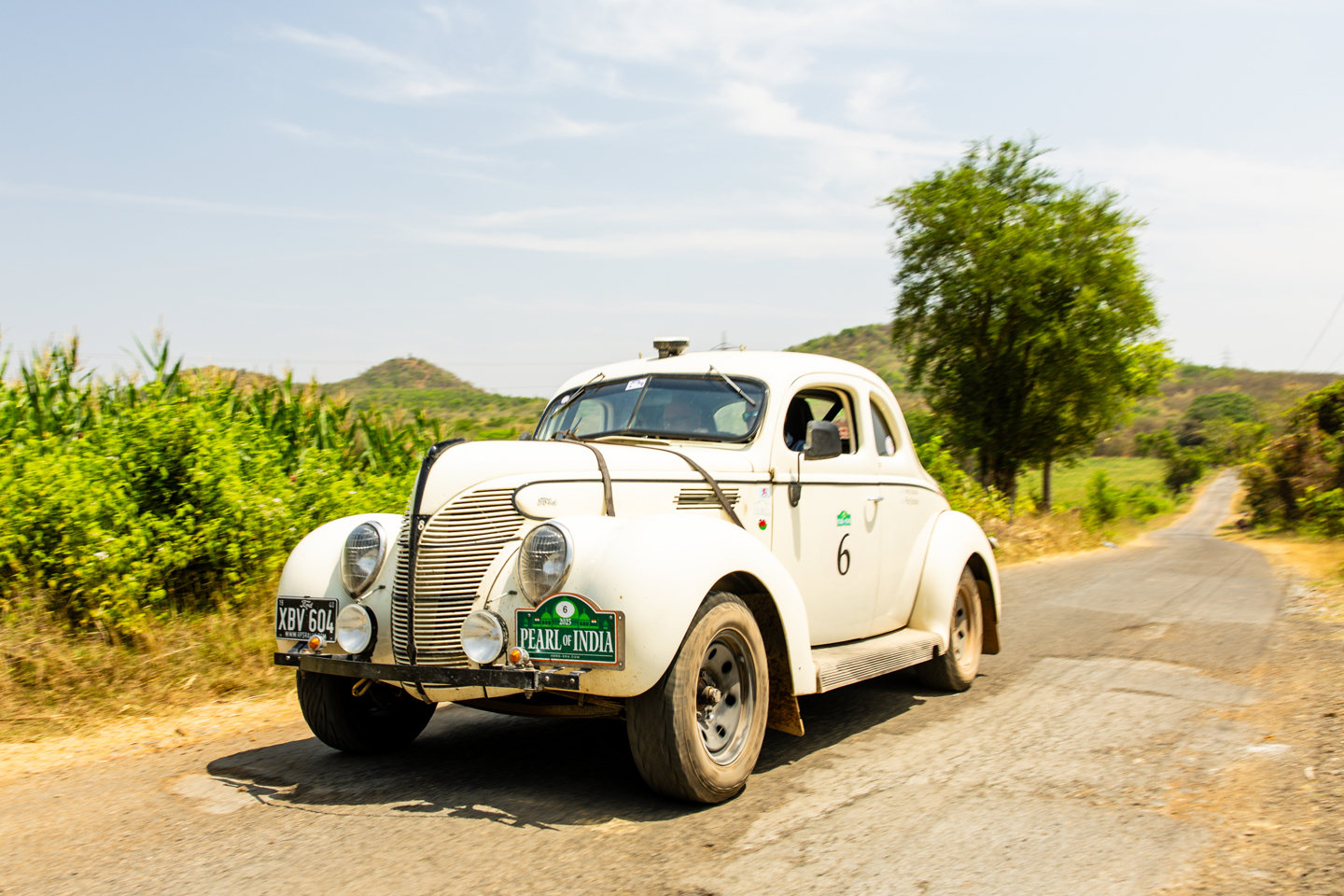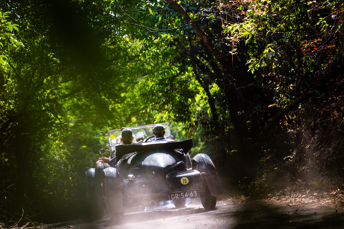 A run through the ever-thickening vegetation followed, and the road also began to climb as we headed into the Ghats. The second regularity of the day was an even steeper climb, and in terms of this event it was also a long one, at 14km. There were three timing points to keep on top of, and with the climbing involved it had the potential to do a bit of sorting out. Irrespective of any results, we must take a moment to appreciate the sound of a well sorted internal combustion engine, propelling a car up a mountainside. The engines were singing, particularly the big Ford of Andy and Roy Buchan, rip-snorting its way up the regularity fully on the pipe, with the din reverberating off the steep walls of the mountainside. Andy may have been pressing a bit too hard on the loud pedal, though, arriving 36 seconds early into the final time control on the reg, a mistake that would allow the Fangio of Tommy Dreelan and George Barrack to leapfrog them into fourth place overall and first in class when the days results were released. Tommy and George, along with the Watts in car 19, were best on the reg overall, racking up just three seconds of penalty across the timing points, with the Fangio hitting a zero on the first part of the reg, a performance that would help the green Chevy to the best performance on the day.
