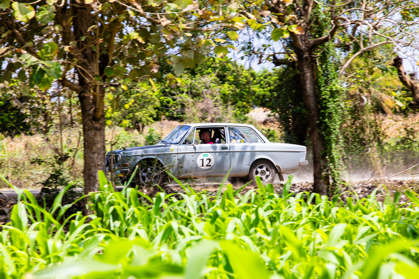 There were plenty of kilometres to cover on day 17 before we could begin to play, nearly 200 of them in fact, almost two thirds of the days total. But as the cars turned off onto the small road that would host the first regularity, there were signs that it would be worth it. It wasn’t a tricky navigational exercise to kick things off, indeed there were no junctions on the road that meandered between the fields that grew a mixture of crops, flanked by palms and ancient Banyan trees. The road was rough in places though, and care was needed not to ground out cars on the larger potholes. There was only one timing point to worry about on the 6km reg, and three cars judged their speed seamlessly across the reg, achieving the magic zero for a perfect run. One of the crews who secured a zero was car 17, the boys in the Escort pushing hard to topple the Hunts from top spot. The other two top achievers were lower down the order, with Mike Dreelan and Bob Pybus doing well in the Lagonda and Mark and Loes Thieme also scoring zero in the Bentley Derby.