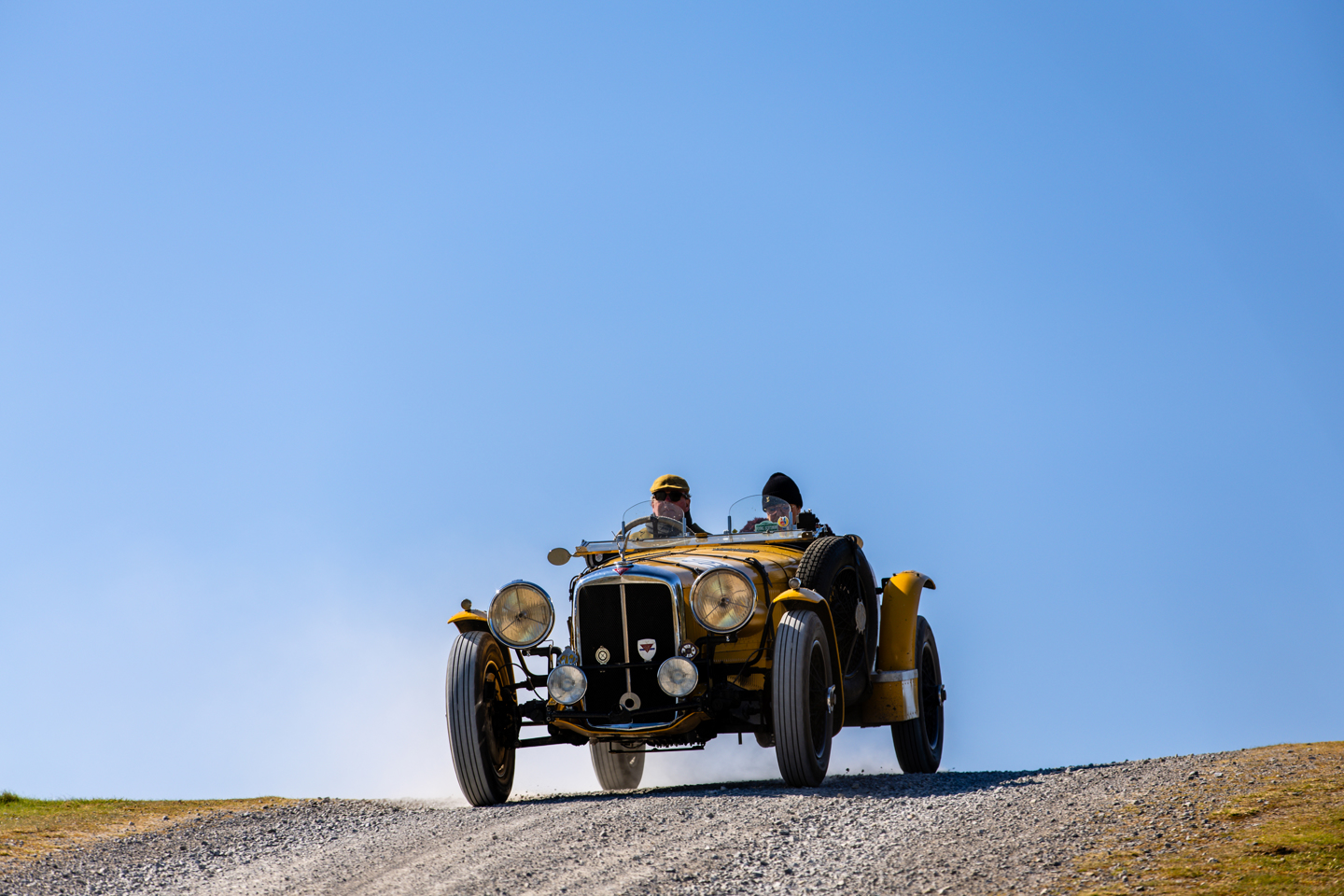 “It’s going to be a big day today” said the Flying Scotsman overnight leader, Willliam Medcalf who is being navigated by Ryan Pickering as they waited to start the first leg. After six tests and seven regularities over a 175-mile route of stunning scenery and brilliant roads in surprisingly beautiful weather, Medcalf and Pickering are still holding onto their lead in the Bentley 3 Litre SuperSports Continuation. They are ahead of the nimble but relatively underpowered 1500 cc Riley Sprite, driven superbly by John Lomas with excellent navigation by Pete Johnson, by 1m 10 seconds with 2 legs to go.