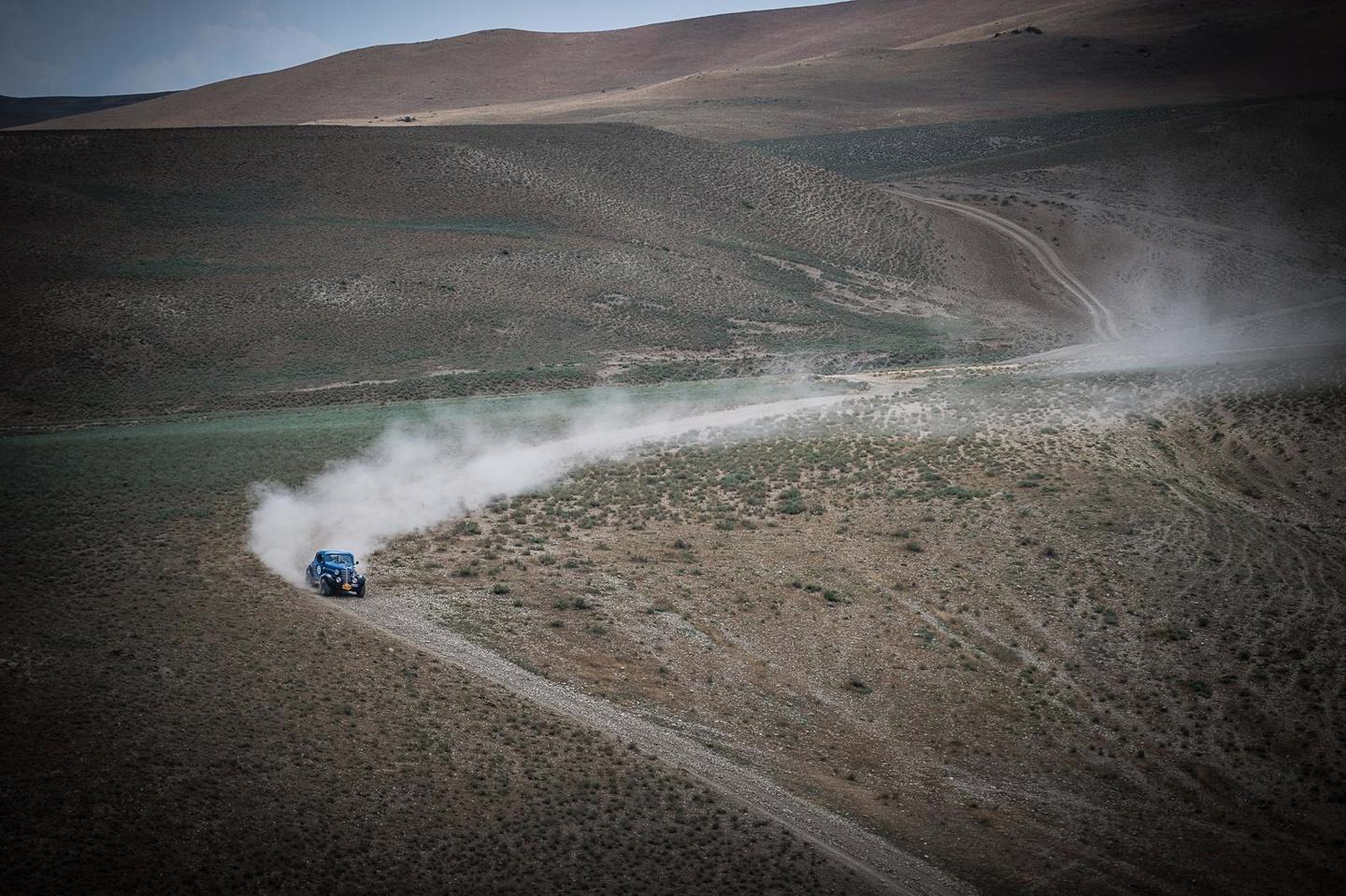 Nobody cleaned the section. With a second STC in the latter half of the day, there was still time to be made up. Heading to the border crossing into Georgia the route took the rally through the varied landscape of Azerbaijan, and on to the Sporting Time Control section sited on the shores of Ajinohur Lake, with a backdrop of the distant Republican Mountains. It was a fast run, in almost safari type conditions on a long and flowing track that whilst bumpy in places, crews reported that it was a joy to drive on a track through golden fields of wheat.