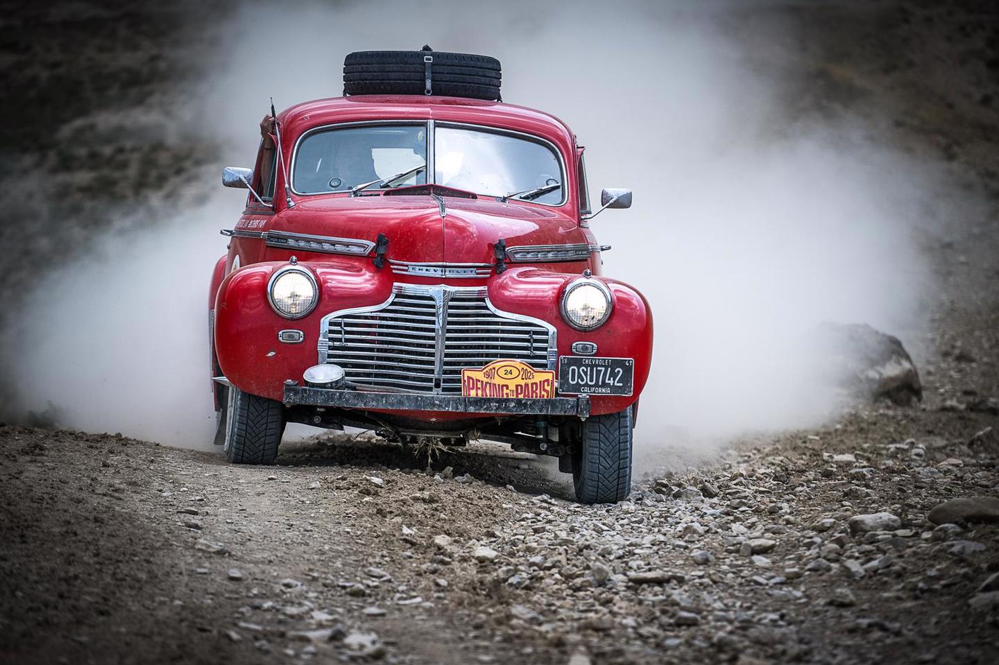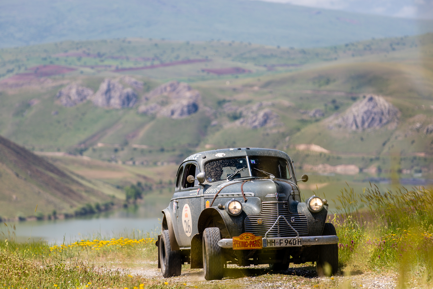 The 2025 Peking to Paris Motor Challenge promised a sting in the tail after the hardship of the deserts of Inner Mongolia and Kazakhstan, but nobody considered that the run-away leaders, Jorge and Cristobal Perez Companc (AR) would be the ones to be stung with ten days to go. After a sublime performance by the crew and the immaculately prepared 1939 Chevrolet Master Coupe, a carburettor failed to close, spraying fuel onto a hot engine which then erupted. Neither crew were hurt as they managed to put the fire out with mechanical assistance crews arriving later who eventually managed to re-start the car.