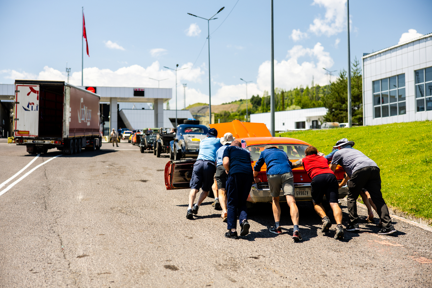 Crossing the border from Azerbaijan to Georgia, was the fifth country of the event so far. The Spanish Mercedes of Alejandro Caceres and Jose Luis Martinez Gutierrez didn’t manage to fix their engine issues in Baku so were towed across, together with the American Zebra Datsun of Ryan and Isaiah Salter still requiring attention for its head gasket. The Salters were to retire the car and arrange for its shipment back to the USA whilst looking to buy another car and continue on the Peking to Paris Motor Challenge.