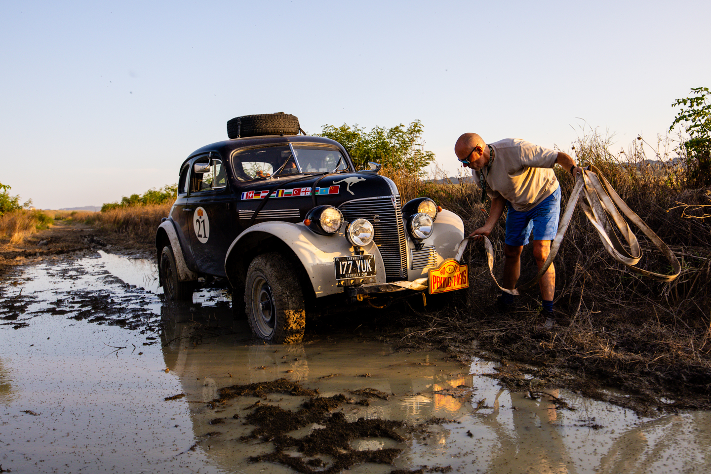 Worse than getting lost of course, would be breaking down. A few may have been more concerned with this than getting lost, such as car 27, the so far luckless Ford of Mike Shultz and Johann Ersnt. It was Mike’s birthday today, so surely this was the day their fortunes would shift. Sadly, they pulled over shortly before the first-time control of the day, with no power, so were out of the day again. There would be other mechanical mishaps in the section, and for cars that had only just rejoined the trail after Baku repairs. One of these was the Zebra Datsun of the Salters, that had now been forced to stop with a failed head gasket and would need the assistance of a recovery truck. Another recovery truck would be needed for car 64, after they suffered a collision in the section. Both crew members were absolutely fine, but the plucky little Lancia had come off a little worse and was undrivable for the moment.