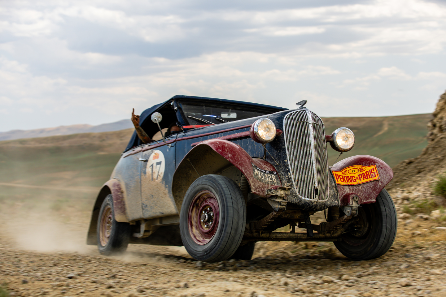 Thunder boomed and the rain was falling as the last car made it into Qakh tonight, on day 24 of the Peking to Paris. A storm was brewing in the mountains, just above the hotel, but it wasn’t just the weather that was unsettled, it had been a turbulent day in the competition as well.
