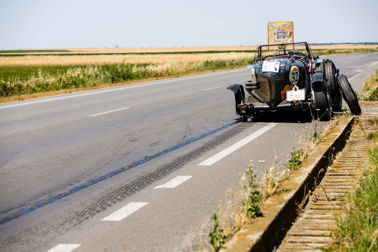 It was on one of these arterial routes that car 32’s day would come to a grinding halt, quite literally, when one of their wheels jettisoned itself from its mounting, leaving the Bentley sliding along the tarmac. Driver Peter Pollet said he first realised something was wrong when he was overtaken by his wheel, before the left rear dug into the asphalt and put an end to their day.