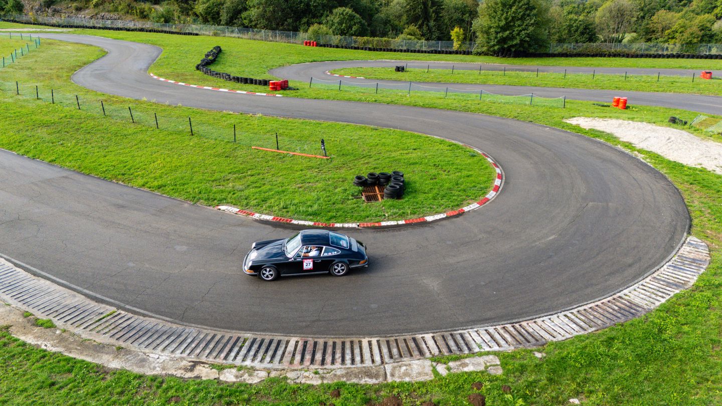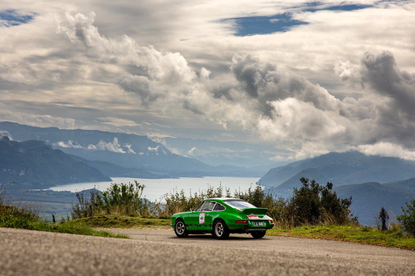 In fact, there were just 33 kilometres to the first regularity, the climb up to which was a slippery affair after constant overnight rain. The cloud clung to the slopes of the valleys, engulfing the mountainsides as the cars made their way up into the foothills of the alps, occasionally obscuring the road. The first competitive section of the event ended up being obscured as well, by a closed road that forced the regularity to be terminated after the first timing point. Post re-route the morning continued in a similar vein, descending and ascending the valleys, under leaden skies, before the first circuit test of the event ushered up a chance to blow out the cobwebs, though with its tarmac slippery under tread there was a certain amount of caution from the drivers as they went about their business of setting a time on two circulations of the Circuit Jura-Sud. Two of the gaggle of Porsche 911’s entered into this event would ultimately share the bragging rights for fastest around the track, with Thomas Koerner and Udo Schauss, and Julian Adams and Grant Edwards both stopping the watch at 2 minutes and 6 seconds, topping Class 6 and 7 respectively. It wasn’t just the 911’s that were quick though, in fact some were perhaps going a little slower than others, such as Matthew Polk and Amy Gould, though they were at least travelling under their own steam after being towed into scrutineering yesterday with an oil light showing on the dash. The oil light turned out to be a handbrake light and once released the 911 had a whole new lease of life. It’s easily done though, a fact that Dick Baines in car 32 will concur with.