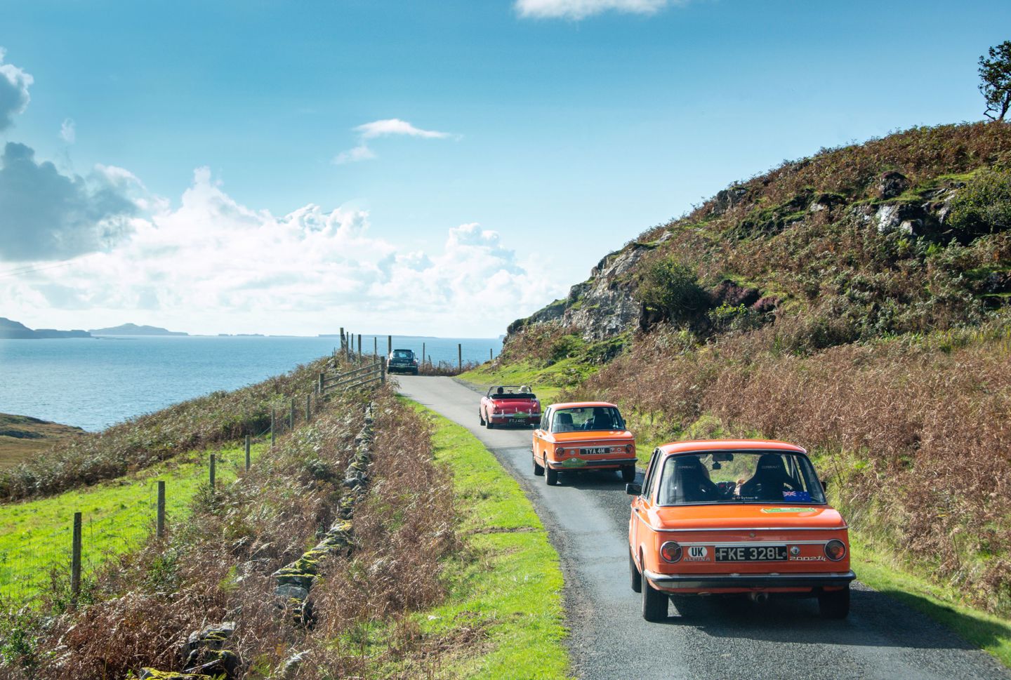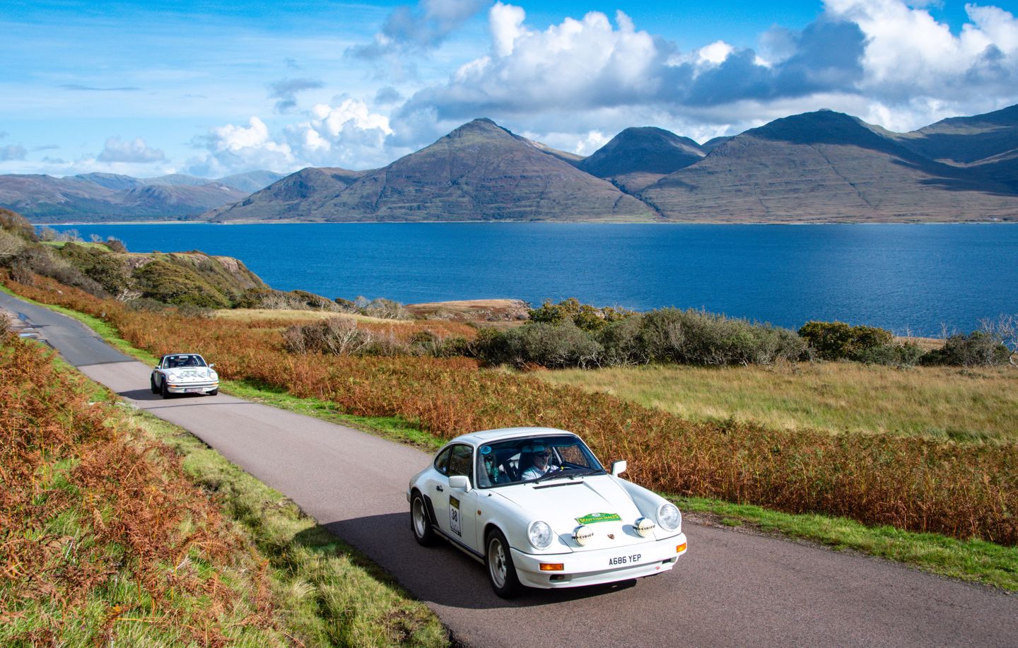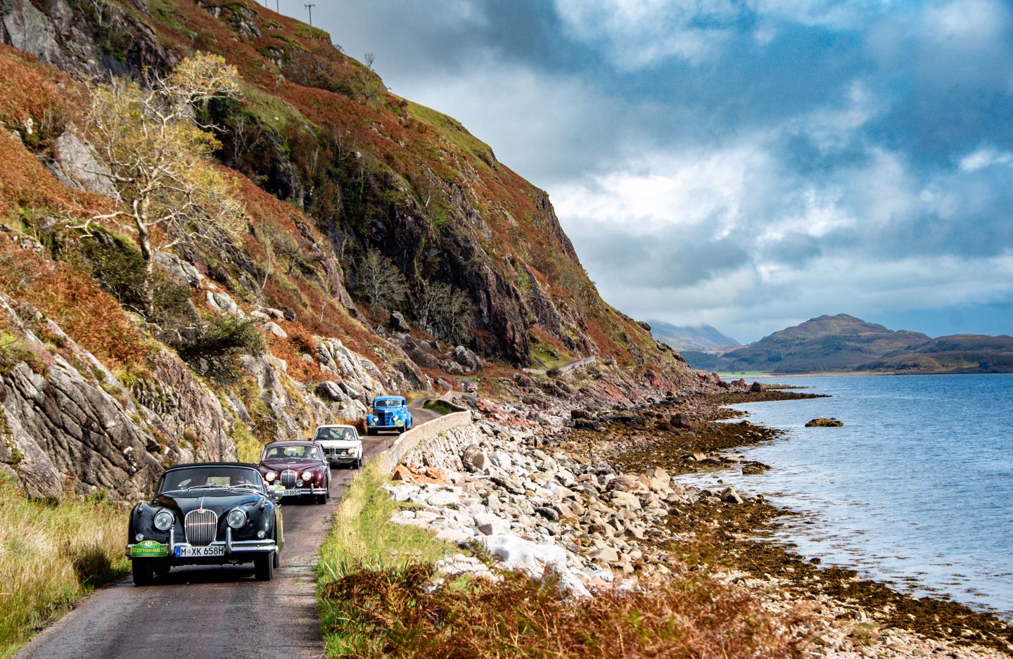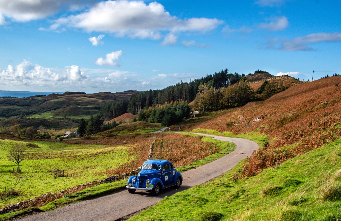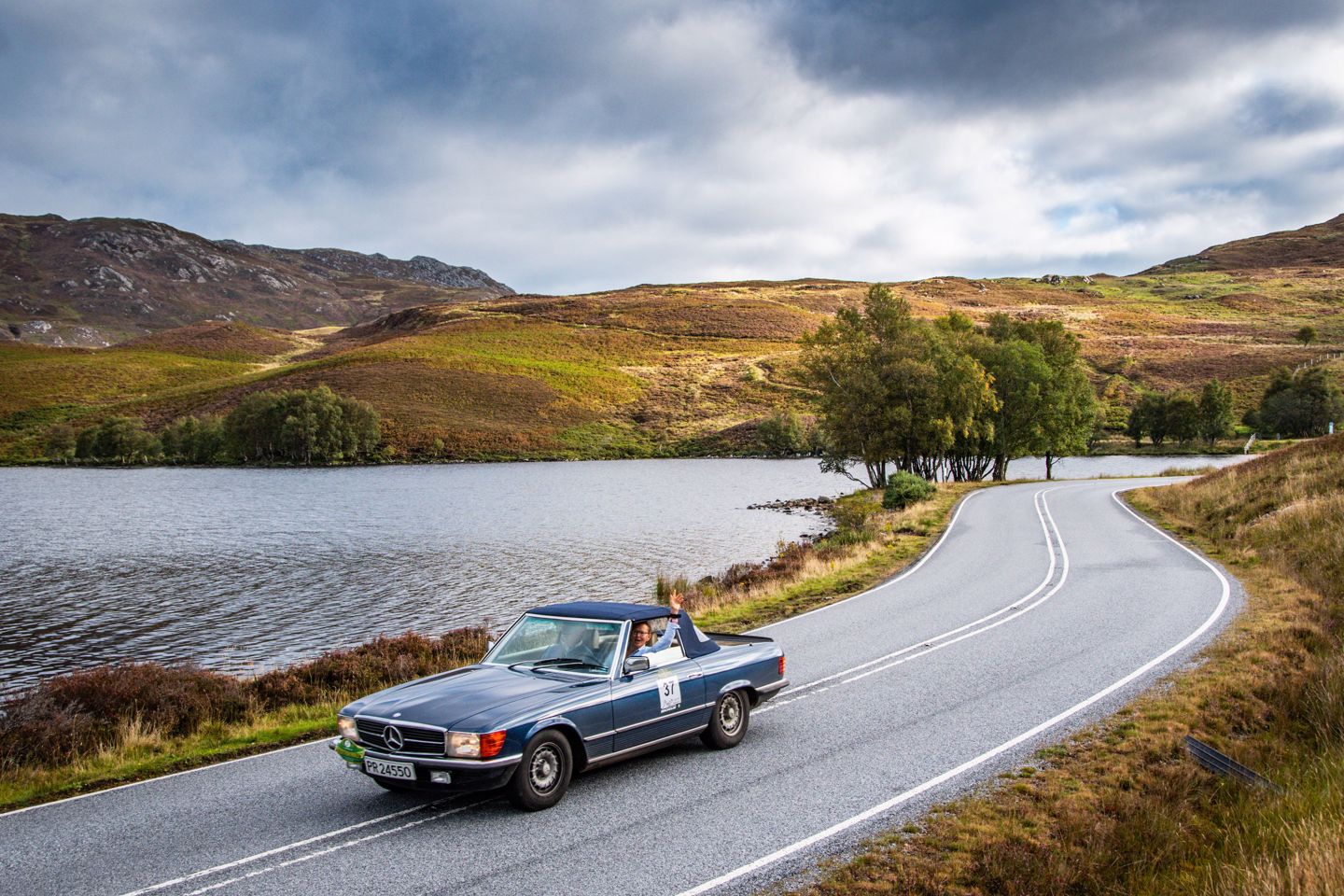 Most had met some traffic on the regularities at some point, but everyone loved the superb coastal and mountain roads that led them to the finish of day four in Tobermory. Gill and James Holt rose to fourth in their Pagoda Merc as great sailors Louise and Peter Morton manage to keep focused for fifth in their Rover P6 despite all the tempting waters and sailing boats around them on Mull.