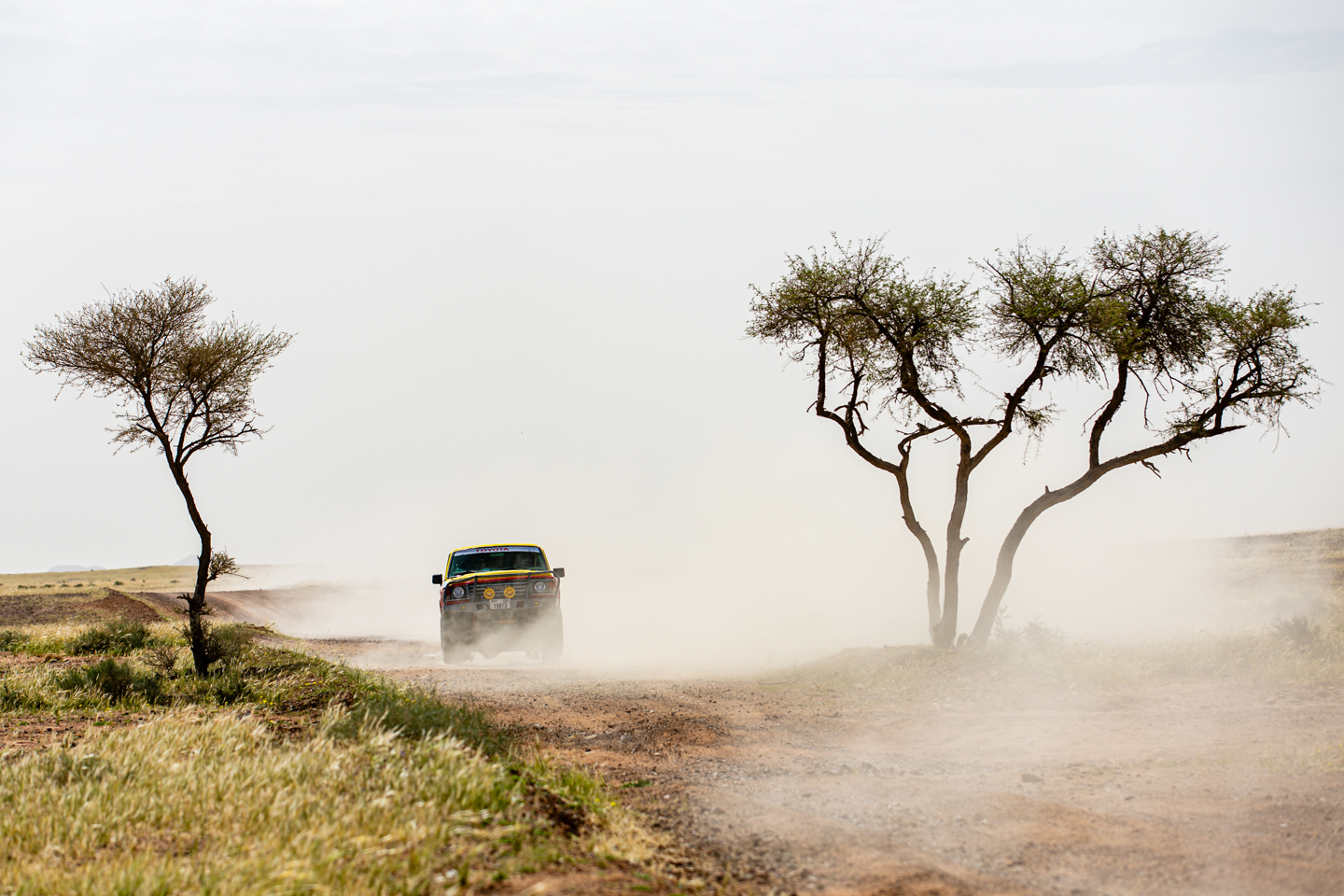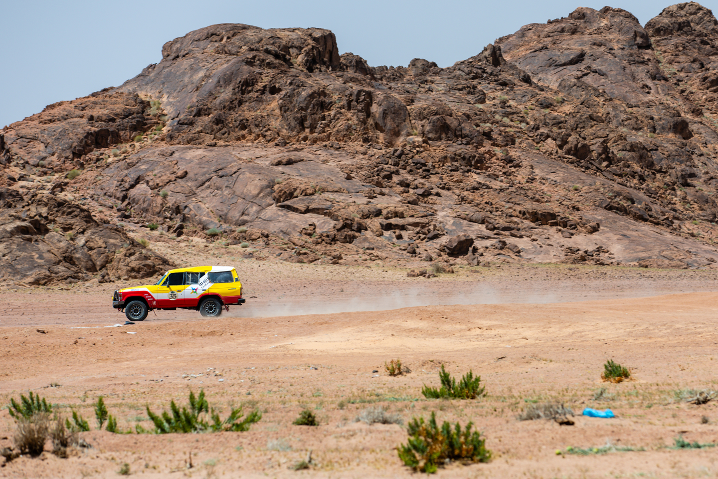 The morning saw largely empty roads though, and eventually highway gave way to single carriageway roads that soon gave way to sand and dirt tracks for the mornings opening STC. This took place on a plateau in the foothills below Jibal Hudayban, in a landscape covered in grass tufts. Amongst these there were a myriad of tracks to follow, offering plenty of nefarious choices to tempt navigators and drivers onto the incorrect path, and away from the route.