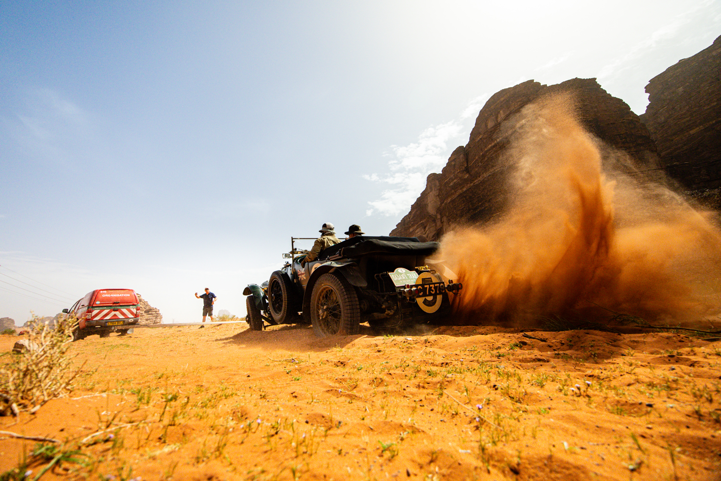 Had the section run on a little further, then this might have been different, as not far past the final control all kinds of chaos began as the tracks in all directions became the softer side of sandy, leading to several crews getting stuck. It seems to have started with William and Harry Medcalf, getting the Bentley wedged in a big drift. This led to good Samaritans Peter and Debbie Fitzcharles heading to help the stricken Bentley, with no regard for their own progress, as they too became stuck in the sand. After this, it’s not entirely clear what happened, but the end result was a number of machines trapped in the soft stuff, with all sorts of rescue operations happening as the smell of burning clutch hung in the air. There were sweeps, competitors and locals in 4x4’s all helping to tow people out, with some rescues even requiring a double header of vehicles to release cars from their sandy traps. The spirit of co-operation was incredible, and this spirit of camaraderie and overcoming adversity is part of the essence of adventure rallies such as this. It must be stated that William enjoyed it so much he went and got himself stuck several more times, or perhaps he had just promised young Harry a beach holiday – somebody get him a bucket and spade.