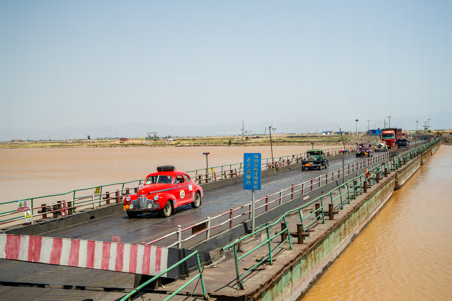 Two-time controls seemed to pass in quick succession, although there was in fact 80 km between them. This was for the most part on a quick road, save for the last ten clicks or so that were on cobbles, and included a crossing of the Yellow River on an old pontoon bridge. The Yellow River is the second longest river in China and sixth longest in the world, and the rickety old bridge, overloaded with coal trucks and other freight, may have felt like the longest river crossing in China for anyone slightly nervous. Thankfully, its mooring chains remained intact.