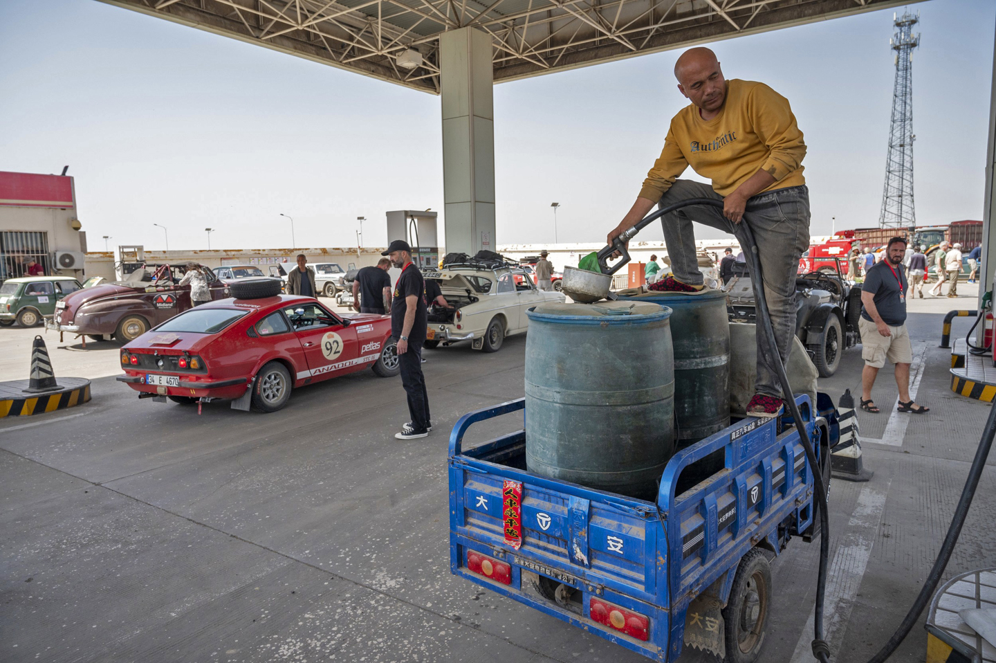 They weren’t the only ones in trouble, the number 66 Porsche 356 of Phil Cuerel and Rela Hoenner-Zullig was having the fuel tank dissected by the sweeps, after the foam inside the tank had disintegrated, blocking and breaking the fuel pump. Thankfully, there wasn’t much fuel in it, despite the Swiss pair having only fuelled up shortly before. ‘Stick 50 Euros in it’ said Phil, which Rela duly asked the pump attendant for. However, somewhere along the line this translated into 50 Chinese Yuen, which is approximately a gallon, not quite the same as 50 Euro’s worth, even at today's prices.