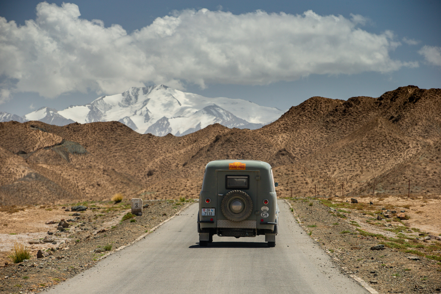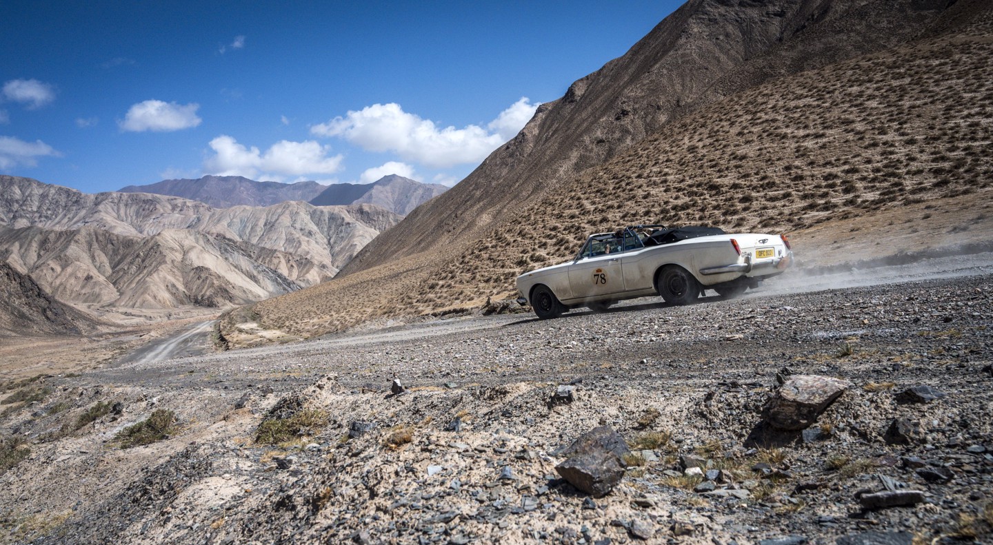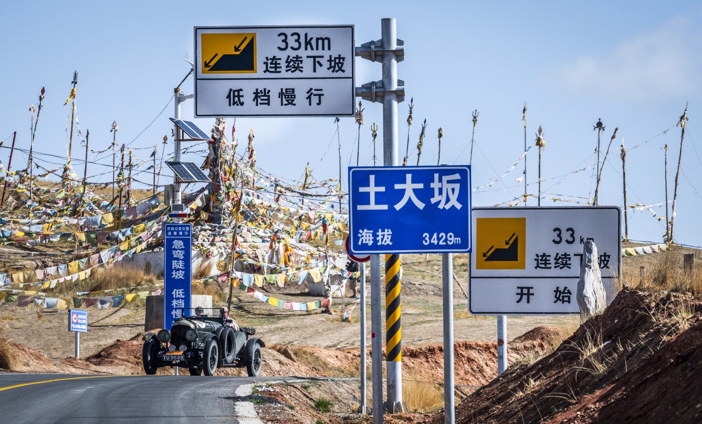 Our road was taking us somewhere better though, somewhere cleaner, as we began the climb to what would be the highest point of the trip, an ascent to an altitude of 3300m in the Qilian Mountain Range. It was the first time for a while that I could remember seeing blue sky, a sky that highlighted the snow-capped peaks of the taller parts of the range. It was breath-taking stuff, metaphorically and literally, and the cars were a little breathless as well, a fact that would become more prominent on the first regularity of the day, a gravel climb 108km and a couple of hours from the start point.