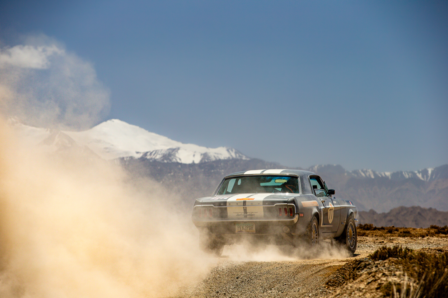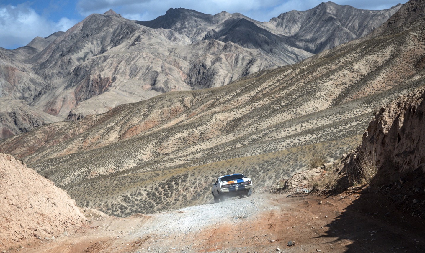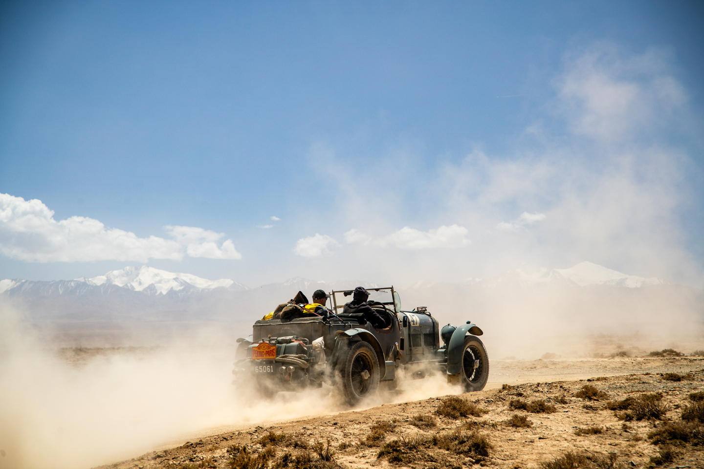 Anyone who wished they were still on the dirt wouldn’t have long to get back to the loose stuff though, as another 10km down the road we were back onto the gravel and into another series of dirt tracks and dry riverbed crossings as the scenery flipped again. As we approached the afternoons time control section the desert stretched out to the south of us, and above that loomed more distant mountains, with their 5500 metre peaks glistening white in the sunshine, as the cars tore up the sand and gravel into great dusty plumes below, as they enjoyed the sporting time control. There were no major dramas for anyone during this section, although John Henderson in car 99 managed to wrong slot just before the time control, but still got the car turned around and home inside his minute.