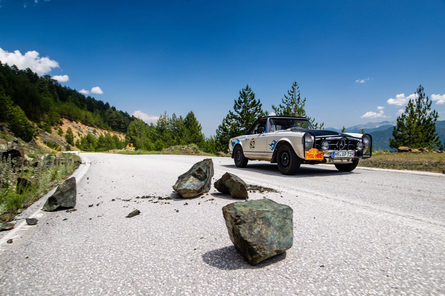 Relative to the rest of the journey, Greece disappeared in the blink of an eye. The route and the roads were some of the best we have enjoyed, a rousing run up and over the Olympus Mountain range, with Mt. Olympus and its divine inhabitants presiding over a climbing regularity. There were views over the Thracian Sea, not that anyone cared particularly, as this was behind us and all that matters now is driving forward. Another reg took us into Acropolis Rally territory, on the dazzling road to Meteora, with its famous rock formations, that rose high above the road in great geological spires. Drone was by far the best way to view these, but the Park Rangers sadly put an end to the activities of the media team drone operators. Still, Dave Swart and Izzy Morely had other ideas, as they attempted to turn their Hi-Lux into a hot air balloon. There had been a mix-up in the conversion from Bar to PSI and the tyres on the truck now had almost enough gas inside them to achieve lift off. Thankfully, Dave is a big lad and decent tether, but perhaps double check their maths if they’re dishing out any meds to you on the rest of the trip.
