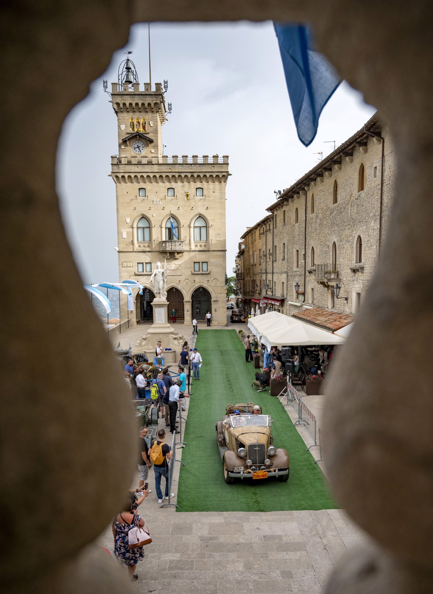 The enthusiasm continued into the morning after our arrival, when onlookers gathered to watch the cars compete in a test on the narrow streets of San Marino, including state dignitaries and a film crew that interviewed each driver in turn at the finish of the test. Unfortunately, the authorities seemed to have mixed up the words ‘test’ and ‘procession’, perhaps thinking that our cars would be driving the ancient streets in the fashion of the reprised Mille Miglia. Sadly, this meant that the test could not be run as designed, and was cancelled, with the cars driving the planned route one by one and enjoying the fanfare at the finish. The first car to the finish, was car 1b, piloted by a lone Tomas de Vargas Machuca, who has returned to the rally in a Bentley to finish the last few days with us complete with molten passport, after the demise of the LaFrance.