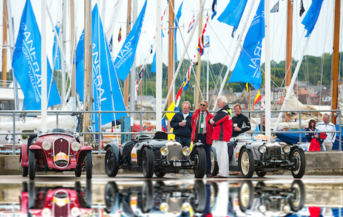 The cars had gathered at the Cowes Yacht Haven on Wednesday 20th July for the pre-event documentation and scrutineering formalities and, from the very moment that cars started to arrive, interest from local spectators and regatta entrants was high. Once all the formalities were complete, crews dispersed to their various hotels before coaches collected them for the journey to the Royal Yacht Squadron where they were to spend an enjoyable evening.