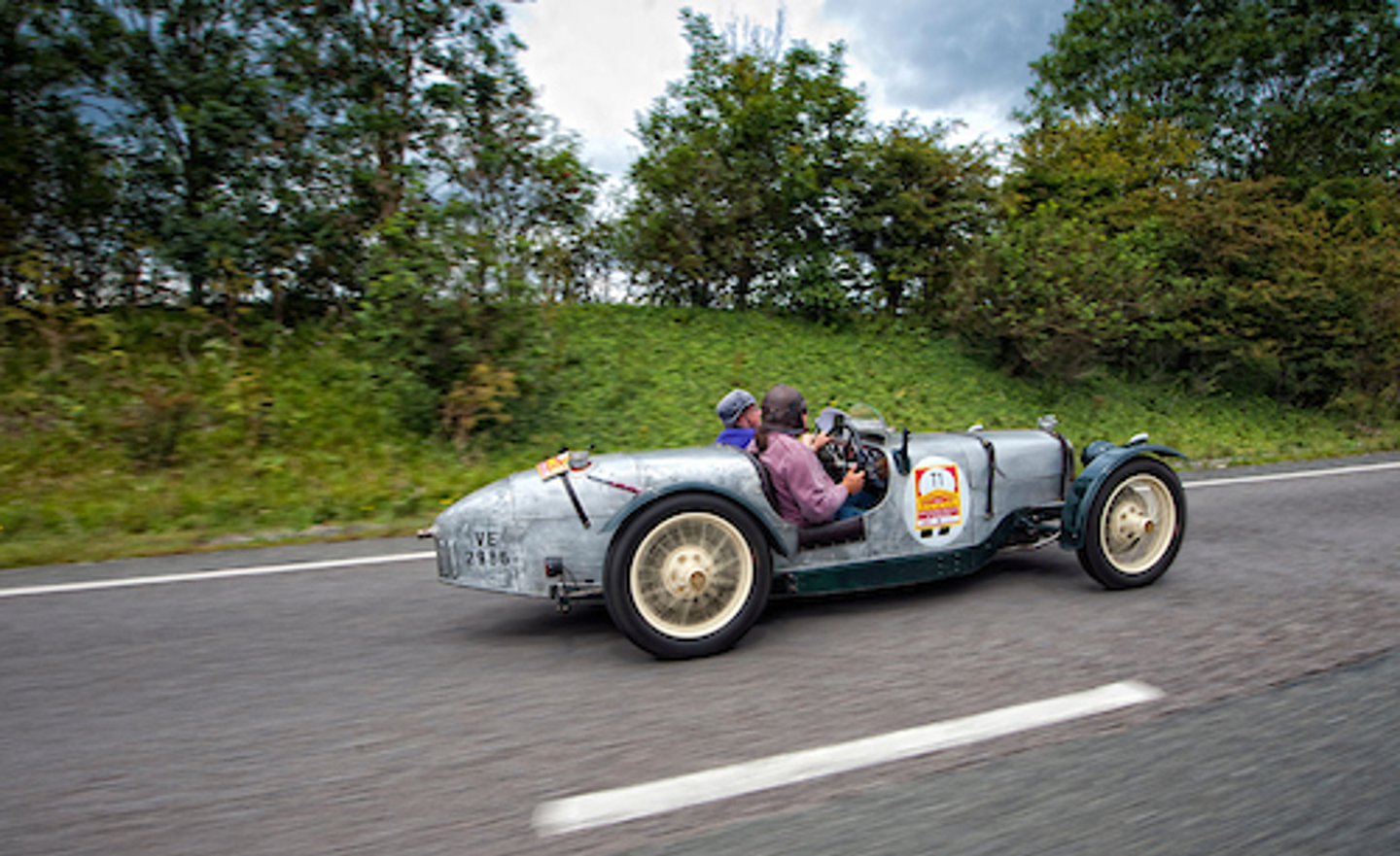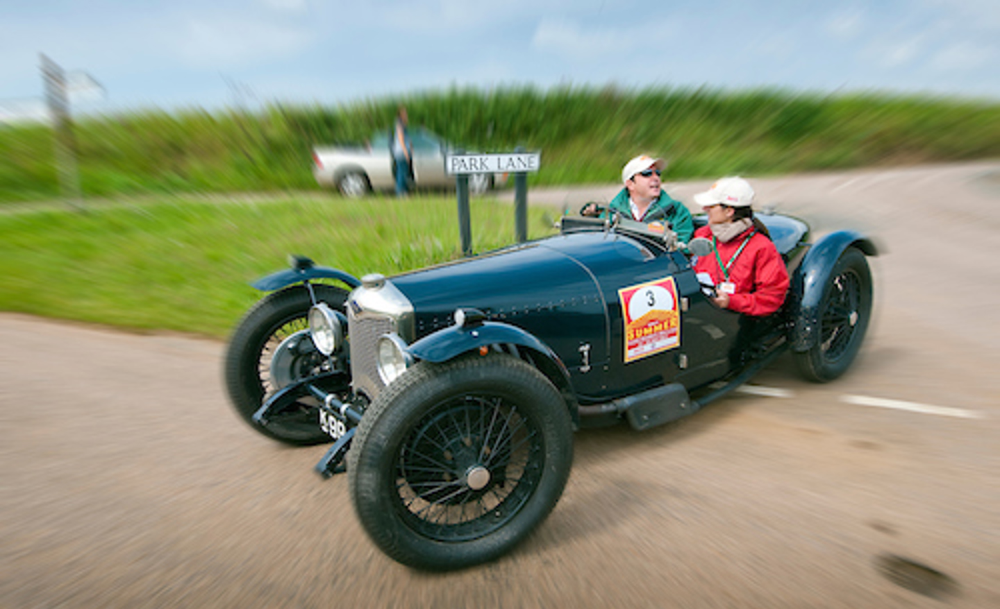 The first car to attempt the test was the 1930 Riley Brooklands 9HP of Tomas de Vargas Machuca and Jasmine Jenny. Tomas had only recently acquired the car and was still coming to terms with the different driving style compared with his usual competition car – a Porsche 911. However, it was clear he was fast learning how to handle the car.