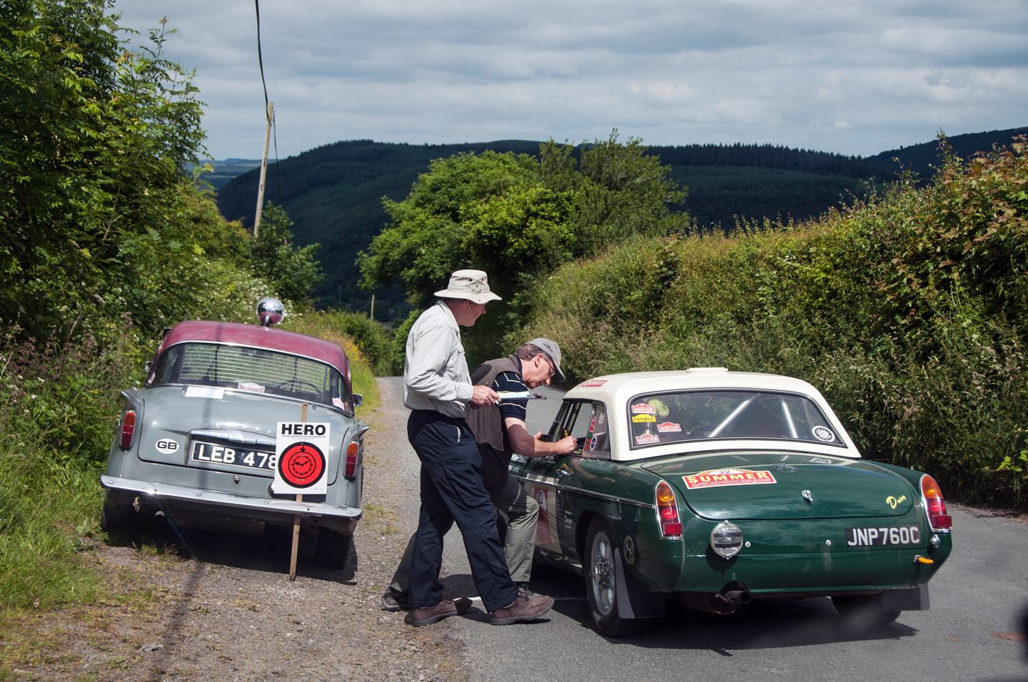 A solid performance from Paul and Guy Tomlinson rocketed them up the order, holding a fine third overnight, the beautiful Martini-liveried 911 should be in its element today as we hit some tarmac tests. A regularity across Glasfynydd saw some real challenges for the competitors, some cleverly sited controls catching a few out as they skirted the Usk Reservoir, this led crews into afternoon coffee at Pen Y Cae where many spoke of the tight nature of the lanes and the traffic on them due to the amazing weather. Newcomers to the sport of regularity rallying are Anna Fabri who drove the vastly experienced Alan Pettit, Stuart Bray and Emanuelle Saidi who have taken the challenge of the Summer Trial by the scruff and are showing some regular competitors the way to go. Holding 24th and 20th places respectively, they are enjoying their first foray into regularity rallying immensely. Dilwyn Rees is having a superb event partnered by the ever cheerful Chris Newman, enjoying some of the finest roads from his homeland, the mighty Healey looking and sounding sublime as it rumbled through the Valleys.